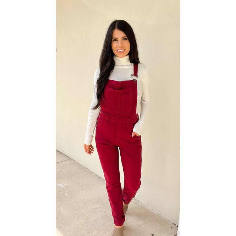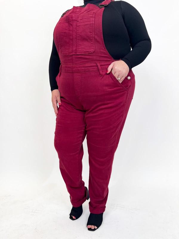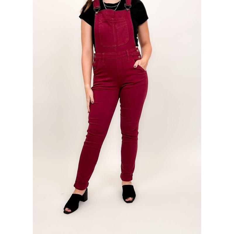 Judy Blue Work It Overalls - Maroon