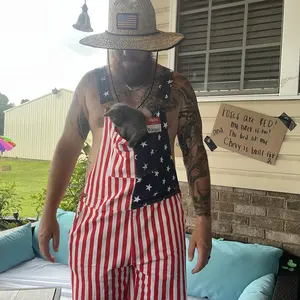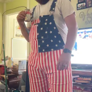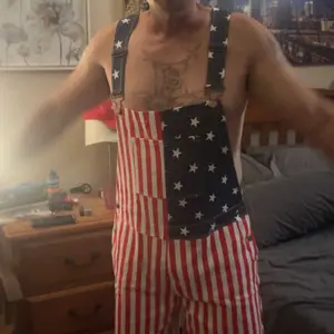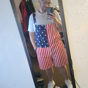 ¡Stretchy red white and blue overalls