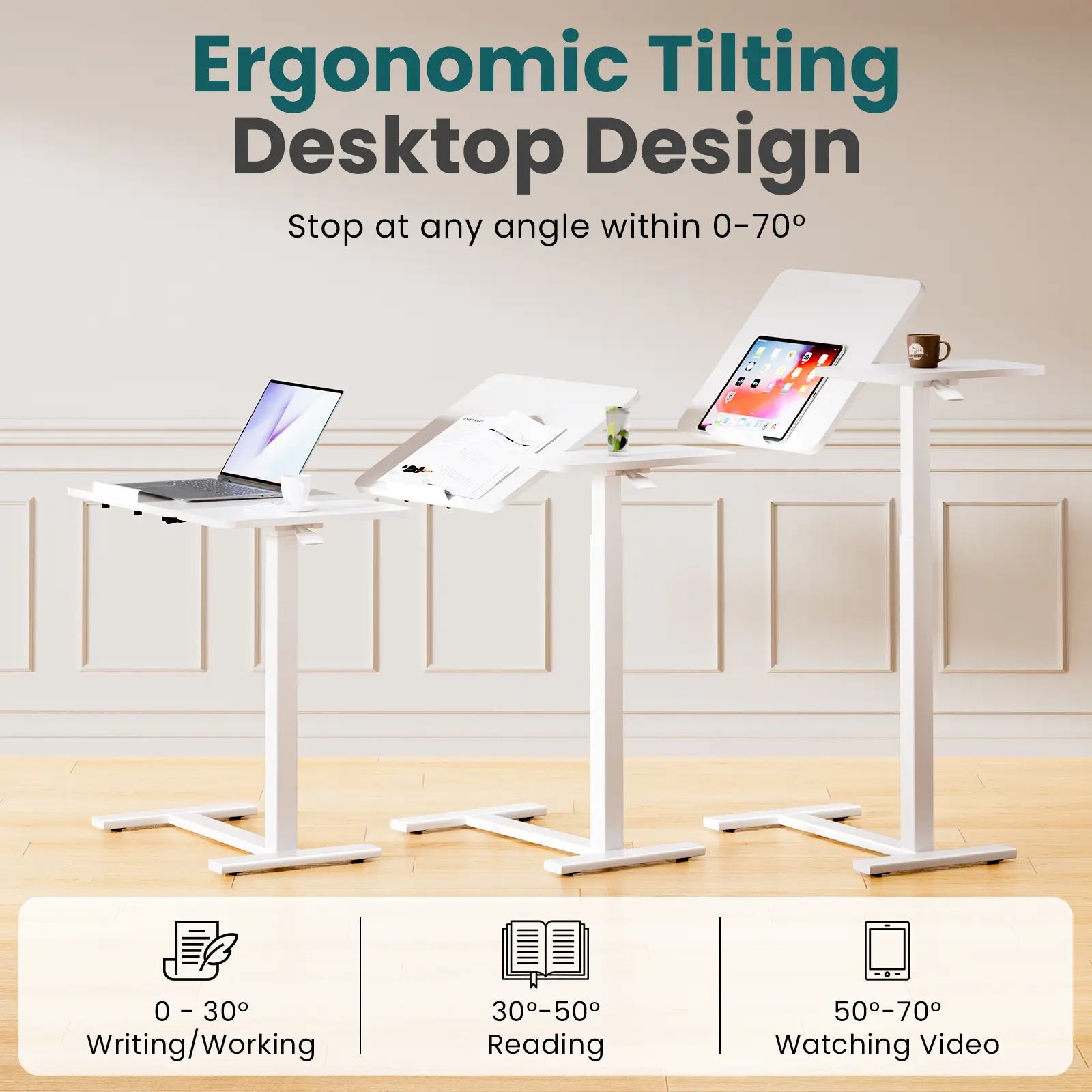 Absolutely what I needed for using my tablet, work, reading, etc. The price was perfect and this was very easy to put together. My only con are the wheels on carpet. They needed to be higher, other than that, I love it!