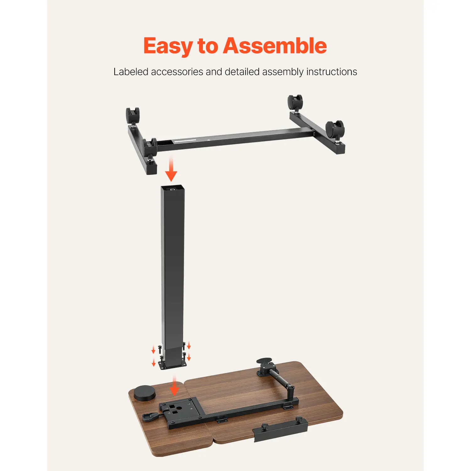 • Adjustable Height: With a smooth hydraulic system, this overbed table adjusts from 27.75 in / 70.5 cm to 42.72 in / 108.5 cm — ideal for sitting and standing. Plus, the tabletop tilts 0-60°, making it ideal for reading, working, or drawing.
