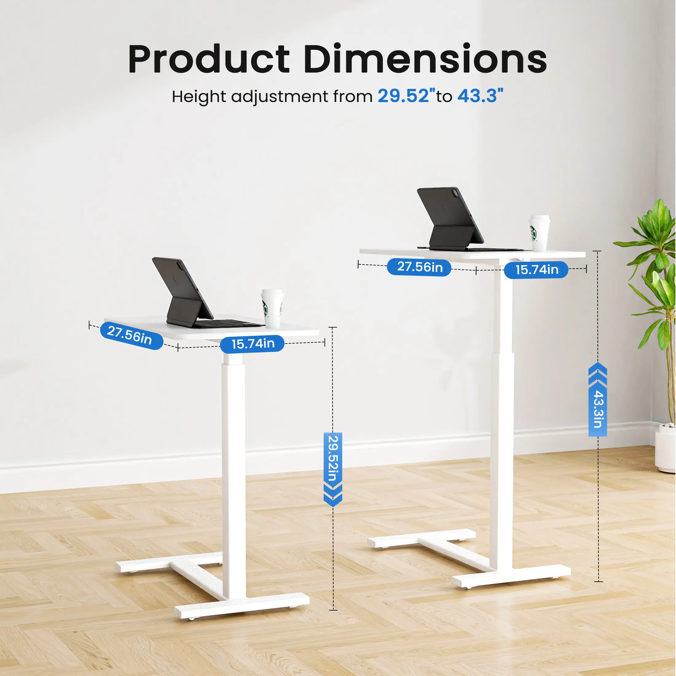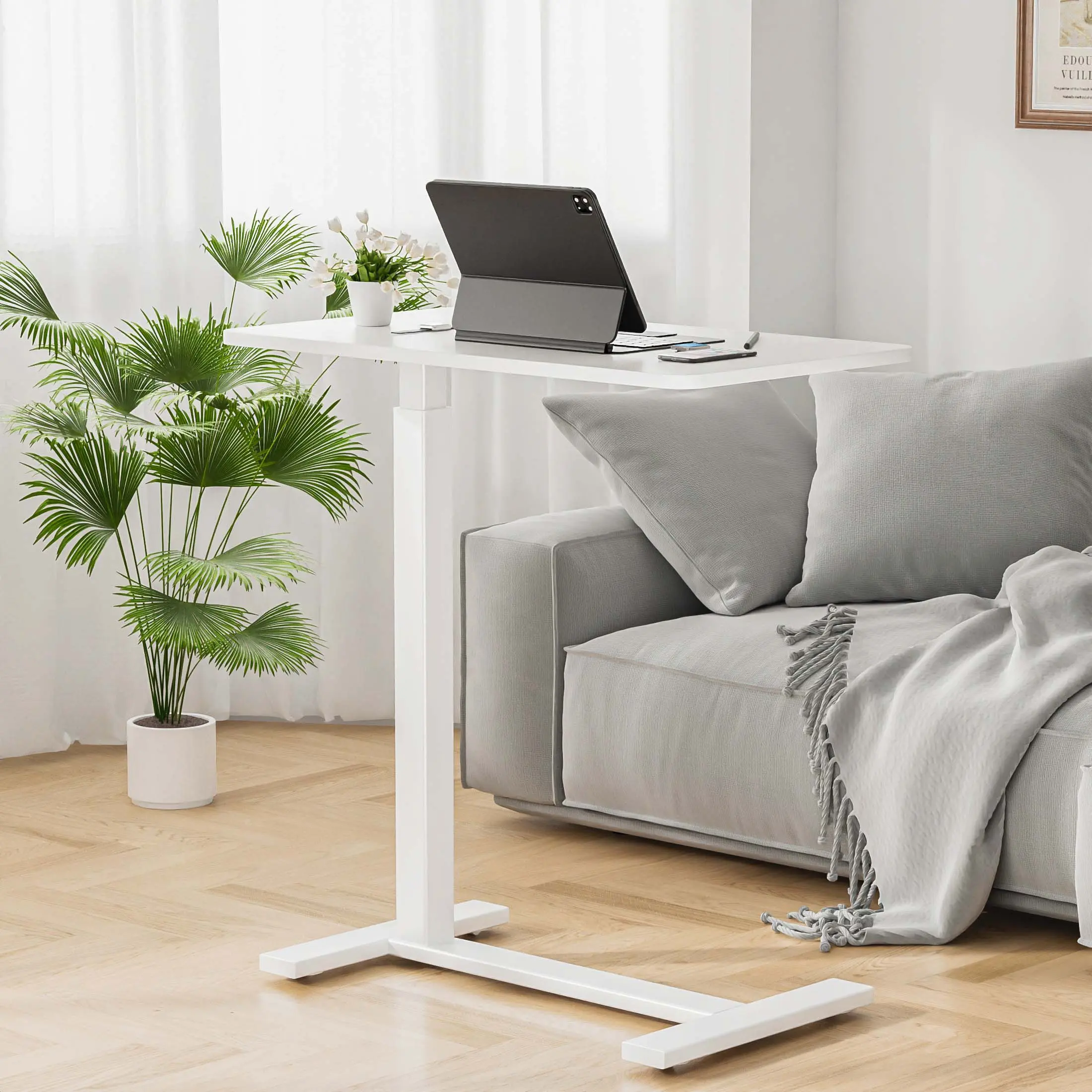 ·Effortless Height Adjustment: Featuring a gas lift mechanism, this adjustable desk can be easily raised or lowered between 29.5" and 43.3" with just one hand—no need to bend down or struggle with manual adjustments. Ideal for use as a hospital bed table or small desk, this feature makes it perfect for those with limited mobility or anyone looking for an easy-to-adjust solution.