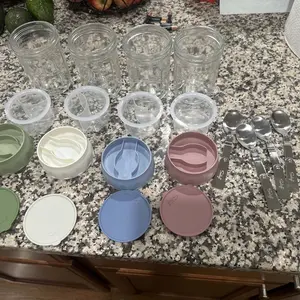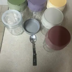 Product Material- Jars: Food-grade glass- 2-in-1 Top Lids: Food-grade plastic- Folding Spoons: 304 stainless steel- Sealing Gaskets: Food-grade silicone
