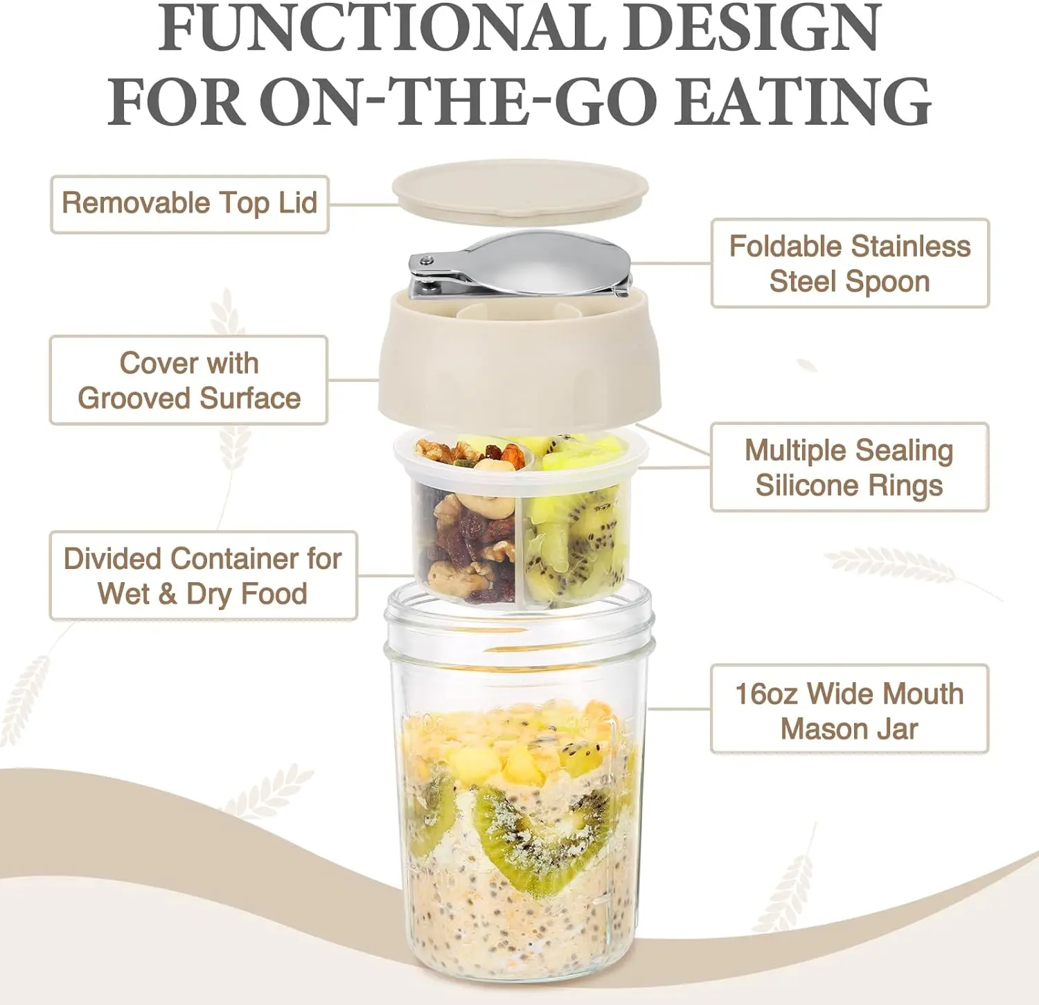 Suitable for Various Prep Meals- Versatile Use: Ideal for overnight oats, yogurt, parfait, salads, and snacks. Perfect for preparing meals at home or taking to work, school, yoga, or gym.