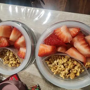 Dry and Wet Food Separation- Extra Small Transparent Container: Features two compartments for separating diced fruits and nuts, ensuring fresher overnight oats when eaten.