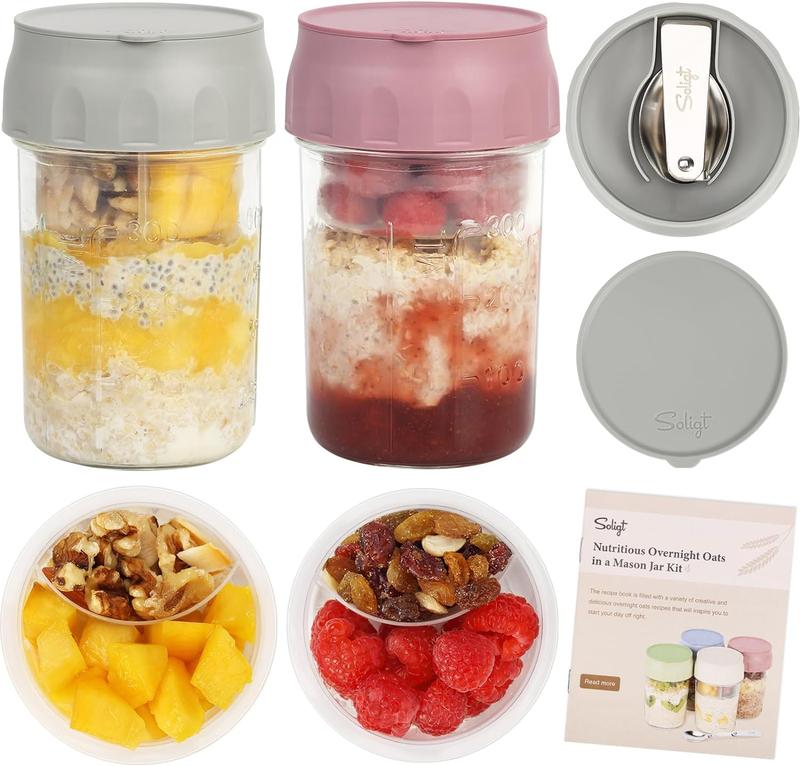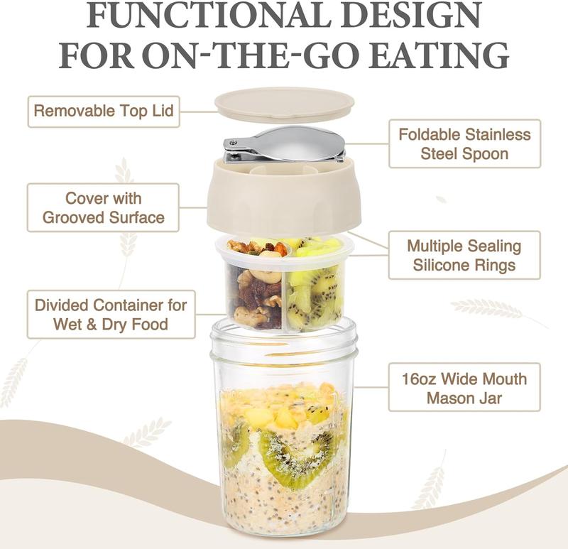 ·SUITABLE FOR VARIOUS PREP MEAL: Not merely for kinds of overnight oat, also a complete container set for yogurt, parfait, simple salad and snack meal, like chips and salsa. Idea gift for your family and friends, everybody loves healthy diet!