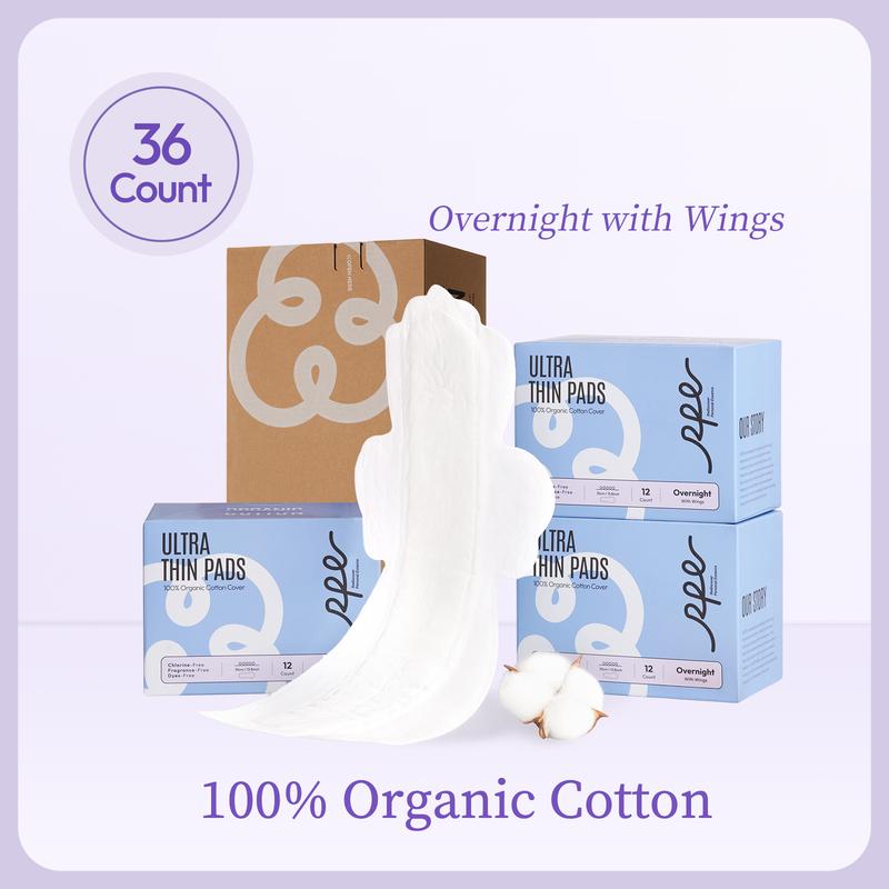 • 1 box (12 pads) of Overnight with Wings, 35cm. 100% Organic Cotton: Crafted from RPE GOTS-certified organic cotton, ethically sourced and free from harmful substances. Ensures a gentle and soft touch for sensitive skin. Perfect for first-time users and those seeking natural options.