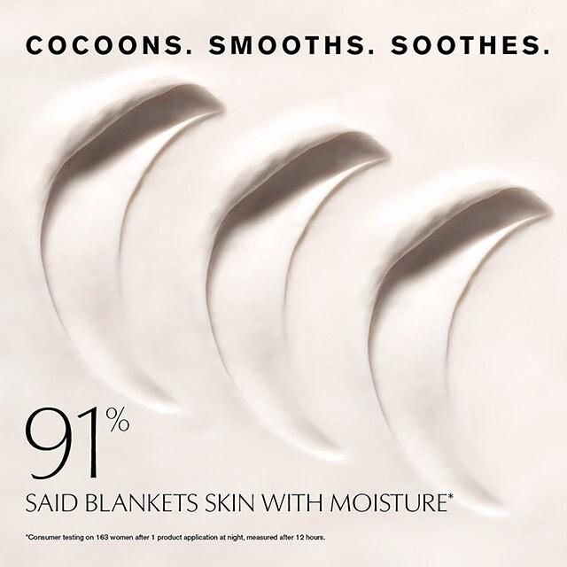 This leave-on Overnight Skin Treatment cocoons skin with its silky, second-skin texture. Visibly activates age recovery every night: Plumps with quenching moisture. Strengthens skin's barrier. Reduces the look of lines. Skin awakens with a radiant, recharged, energized look.