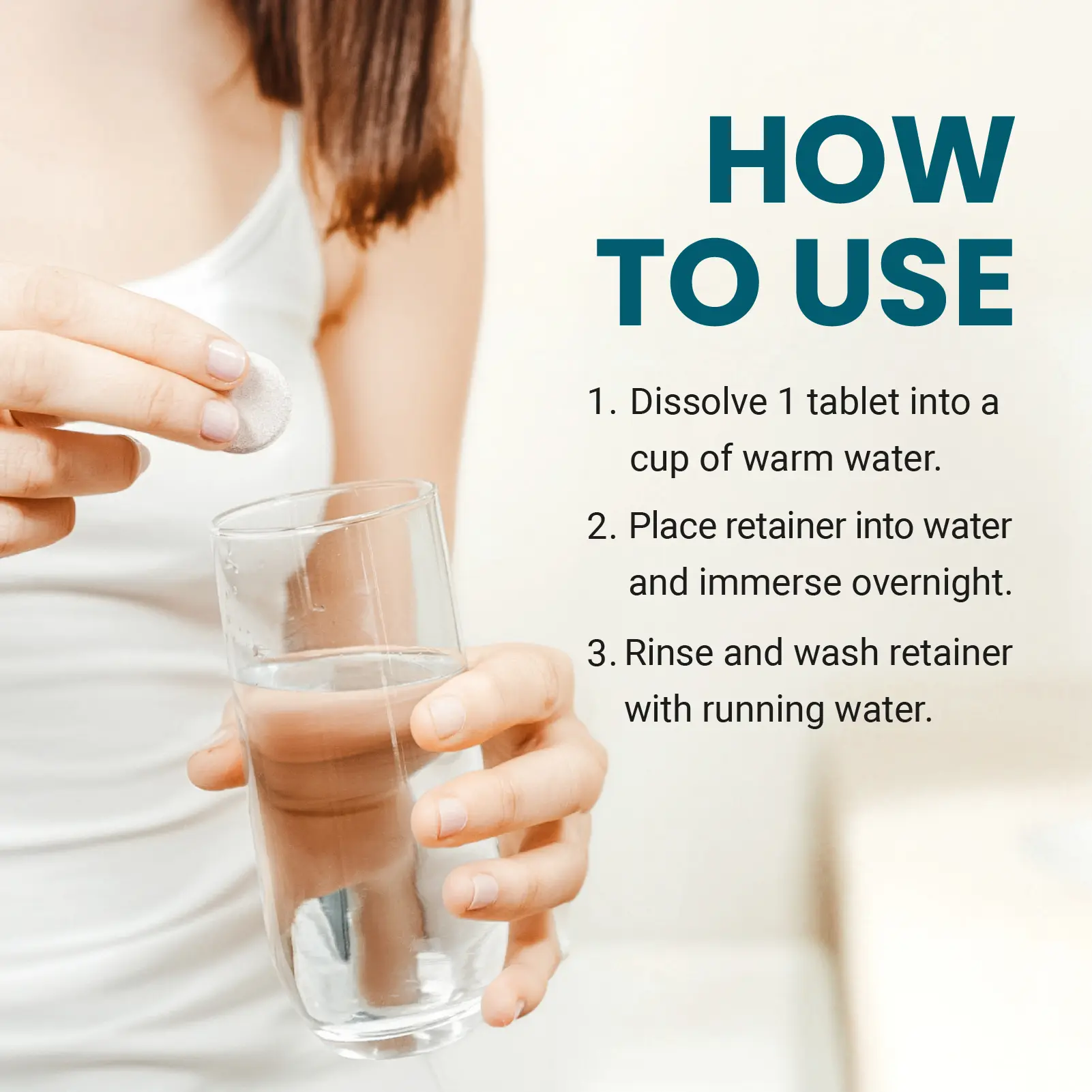 These retainer cleaner tablets are simple to use. Just drop a tablet in a cup of water and leave the retainer in while it is bubbling. I stirred it around a bit after a few minutes and then clean my retainer once over with a toothbrush. Leaves my retainer with a light minty taste. Better than using toothpaste and trying to get it sudsy to brush my retainers.