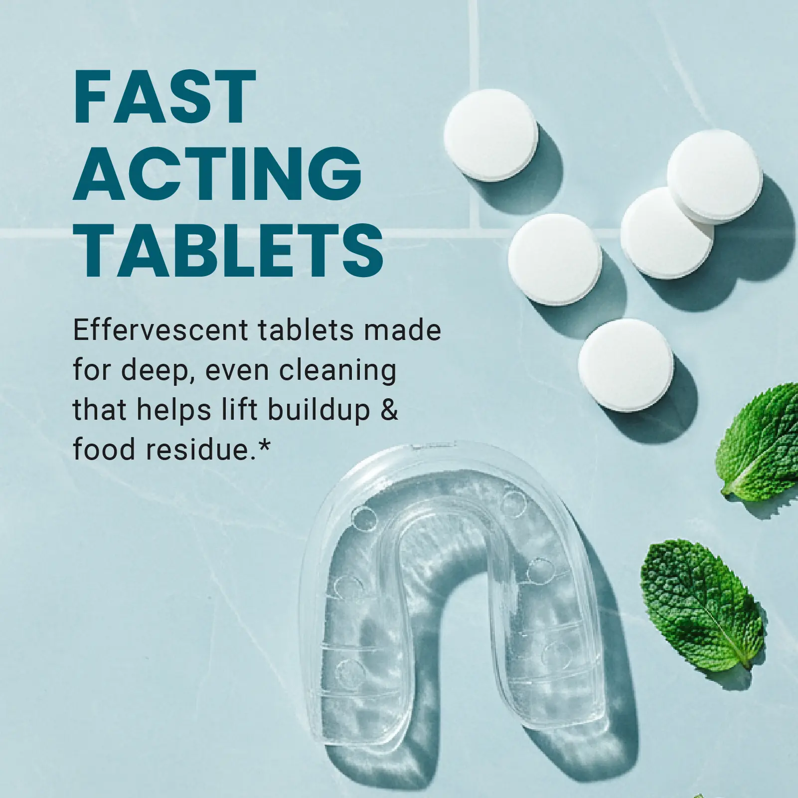 These dental appliance cleaning tablets are work great, and are very easy to use. They eliminate having to manually clean my mouth guard with a toothbrush, and soak it in Listerine. The mint taste is quite pleasant. My only negative is that it is hard to justify such a hefty price for these, when the efferdent tablets are almost as good and at a fraction of the price.