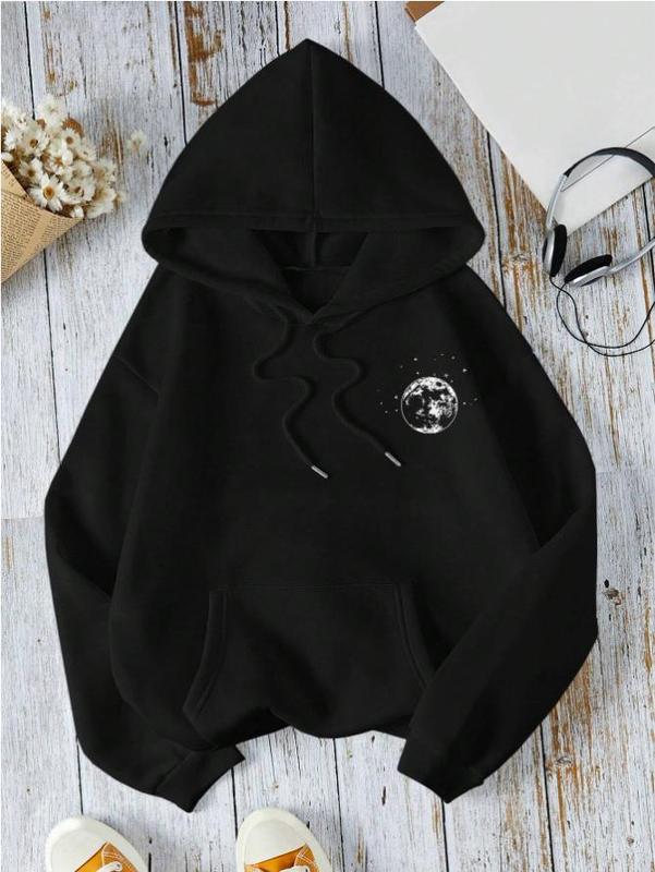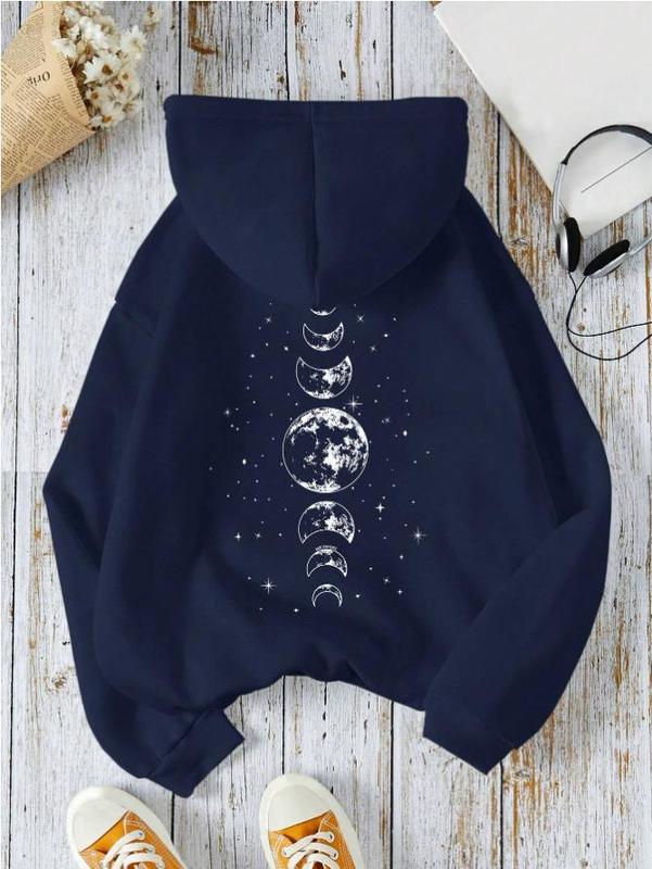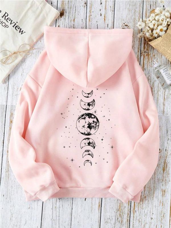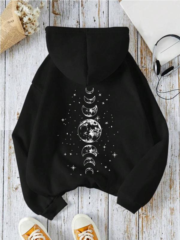 5. Oversize Star & Moon Print Casual Hooded Long Sleeve Sweatshirt Graduation,Back To School Outfits,Graduation,Teacher Outfits For Women,Back To School Pullover Fall Outfit