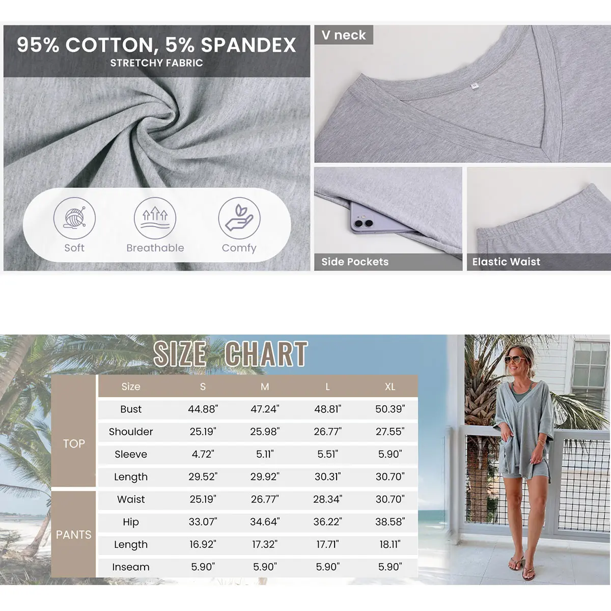 Love this lounge wear being cotton and stretchy. Washes really well love the dusty purple color