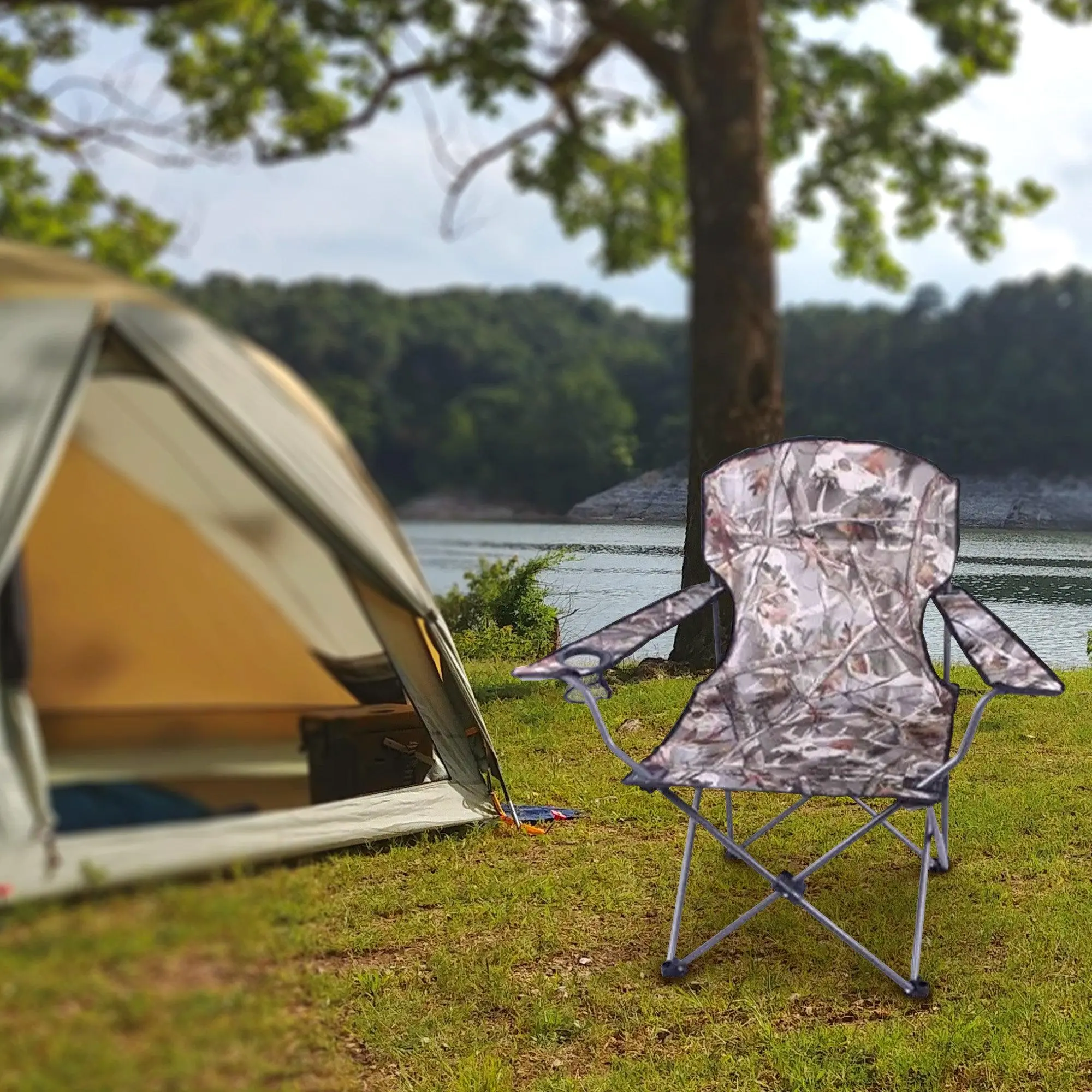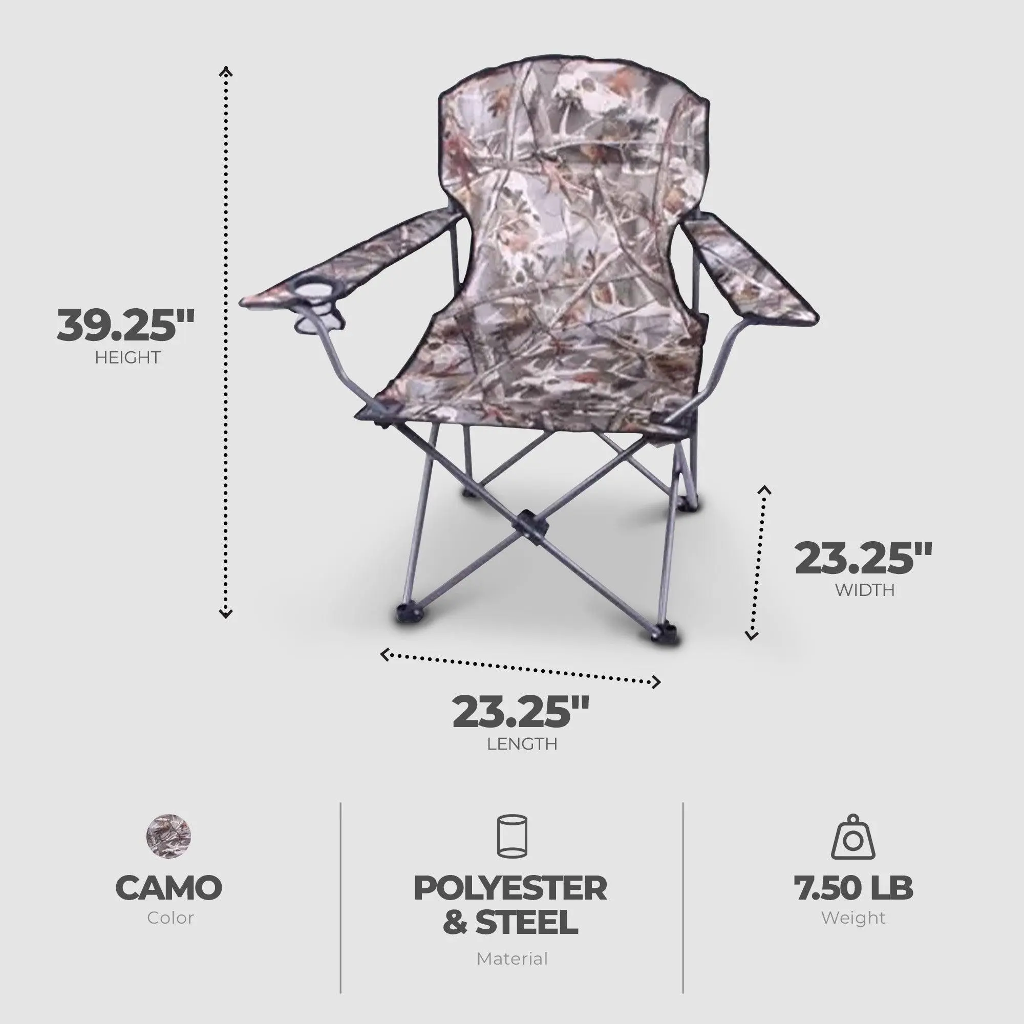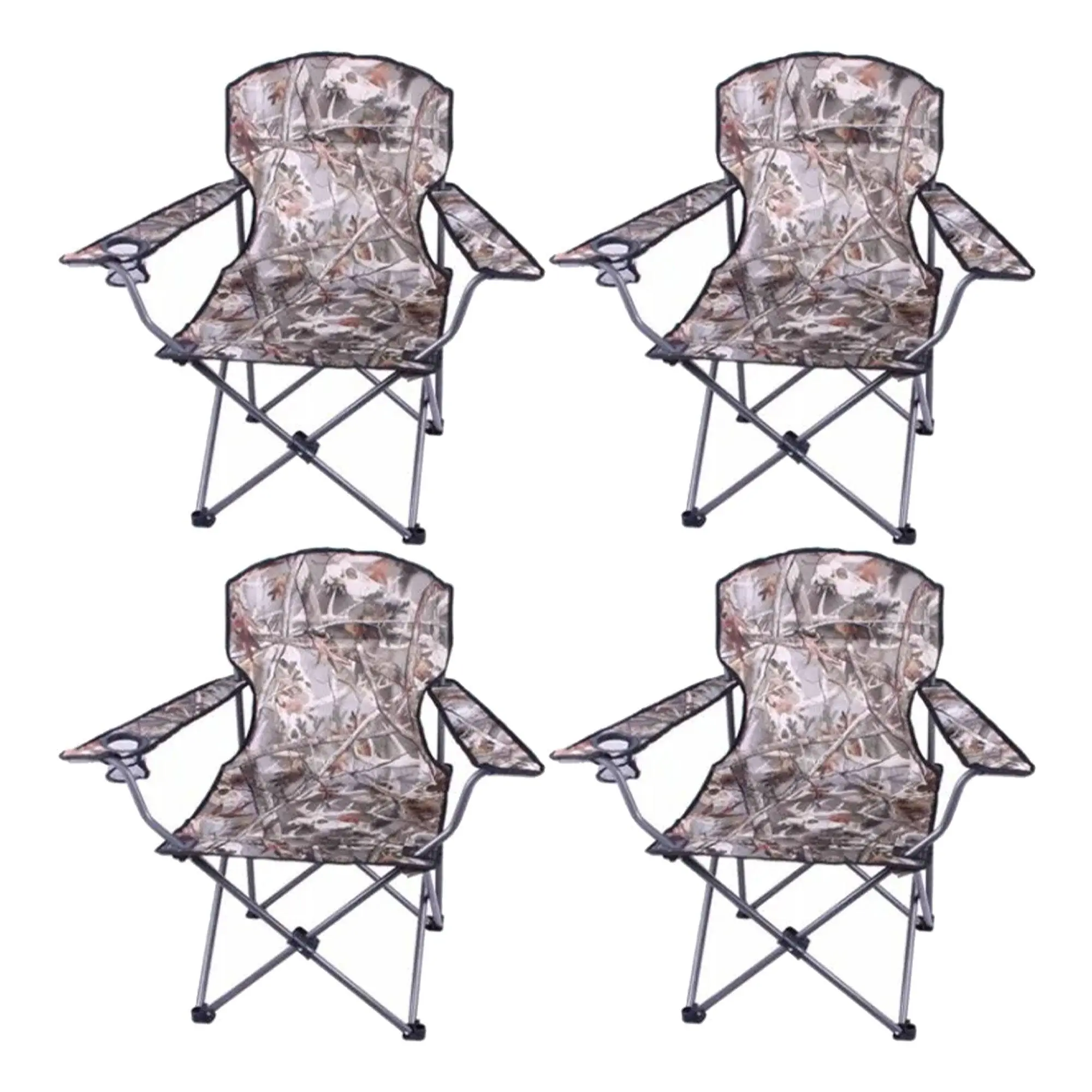 Elevate your relaxation game with the 4-pack of Four Seasons Courtyard Padded Arm Chair, a harmonious blend of comfort and convenience for your dynamic lifestyle.Immerse yourself in unparalleled comfort with this exquisite armchair, cocooned in a Realtree camo pattern 600d polyester fabric that effortlessly complements any environment, from the tranquility of camping to the laid-back vibes of beach lounging or patio relaxation. Revel in the chair's thoughtful design, featuring armrests, back support, and a convenient built-in cup holder, providing not just relaxation but also practicality. Boasting a robust 225-pound weight capacity, this camping chair seamlessly blends durability with comfort, ensuring a secure and enjoyable seating experience. The portable chair's distinctive attributes, such as the wide and deep seating area and a strapped carrying bag, serve as life-simplifying companions, whether you're embarking on a weekend getaway or enhancing the coziness of your kids' room. Effortless maintenance is guaranteed with spot cleaning instructions, assuring that this outdoor chair is always prepared for your next adventure, inviting you to elevate your relaxation with a fusion of style, comfort, and convenience.Enhance your leisure journey with the 4-pack of Four Seasons Courtyard Padded Arm Chair, where a seamless fusion of style, comfort, and convenience creates the ideal setting for relaxation.