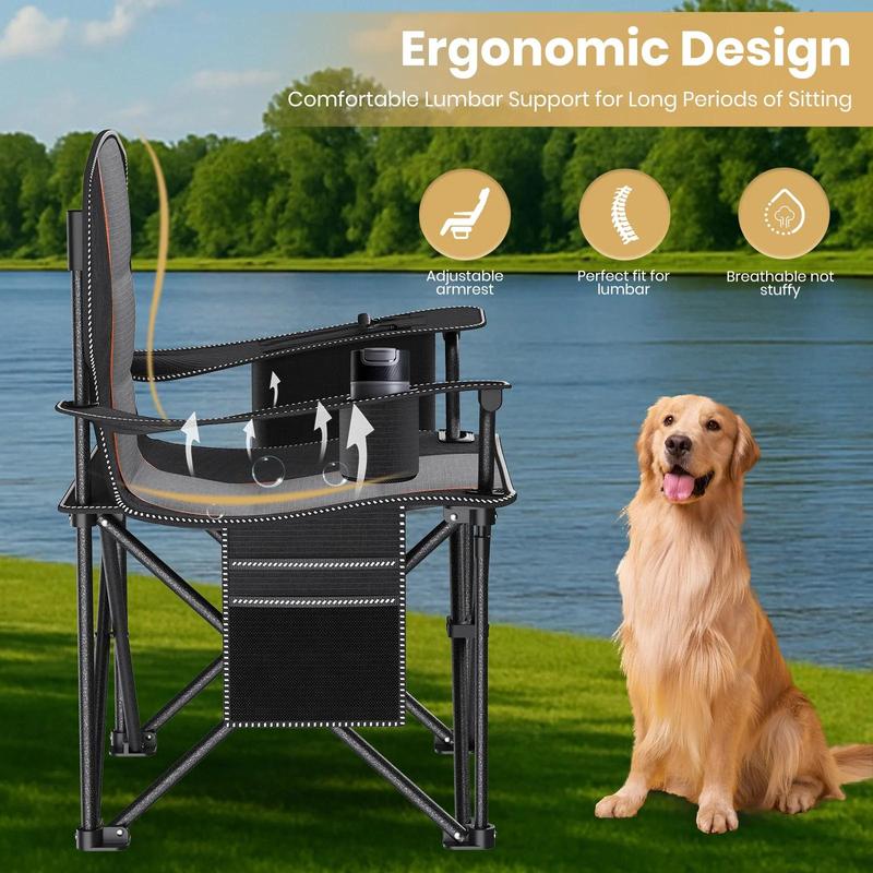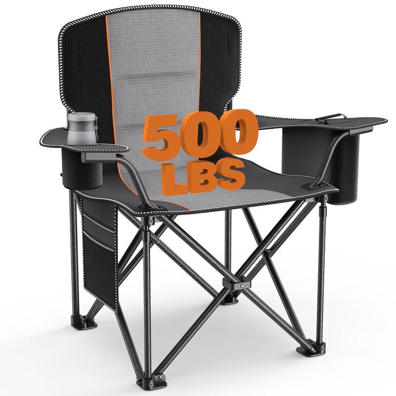The seat, backrest, and armrests are generously padded with high-density foam and covered in soft, breathable 600D Oxford fabric. Sit comfortably for hours, whether at a game, campsite, or in your backyard.