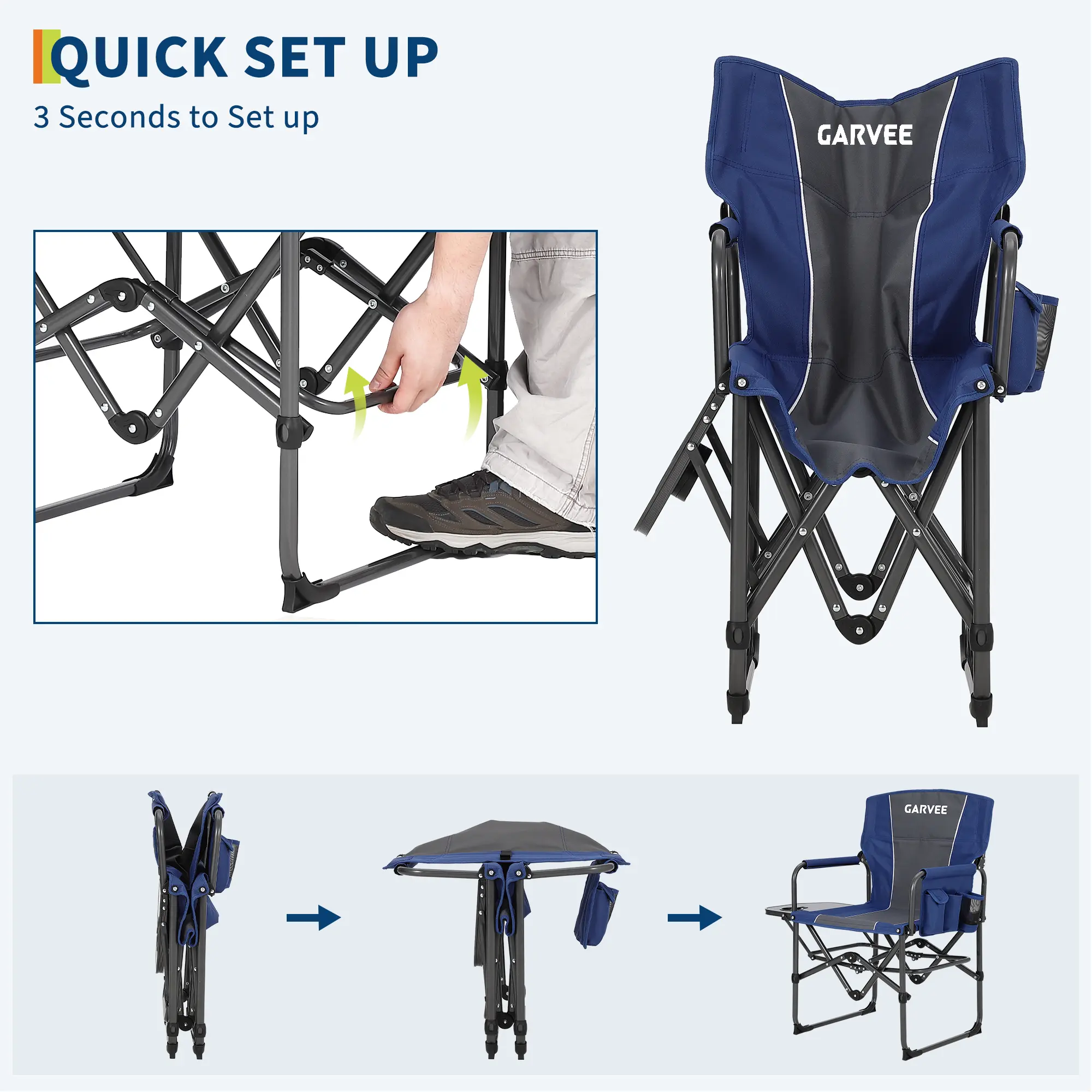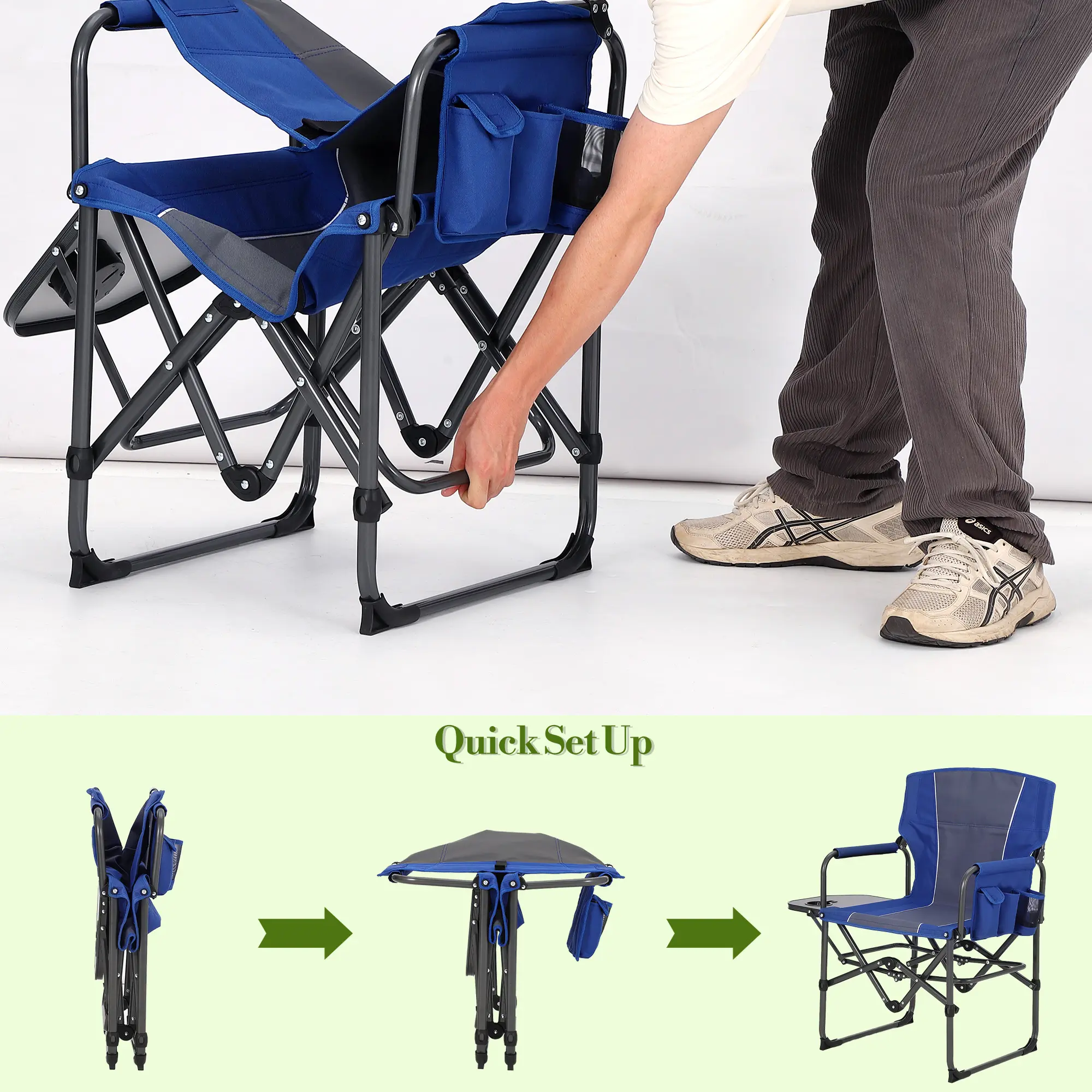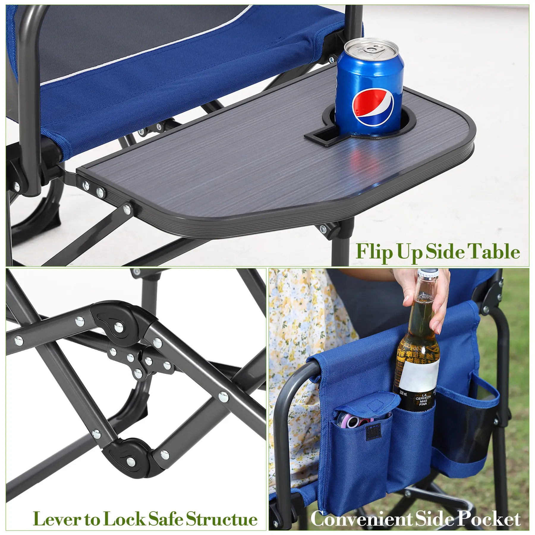 ·Convenient Side Table & Pocket: Stay organized with a built-in side table for drinks and snacks, plus a detachable side pocket for your phone, book, or small essentials—perfect for camping, fishing, or picnics