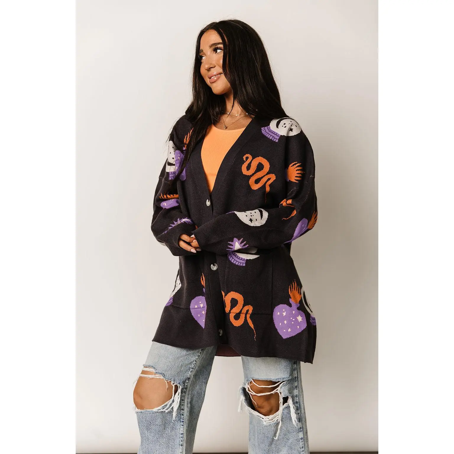 This cardigan is sooo cute and cozy! Great quality and perfect for spooky season