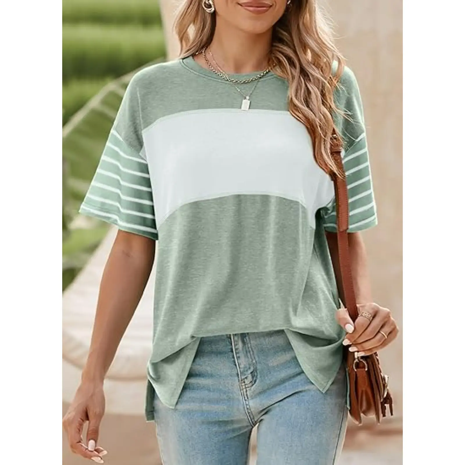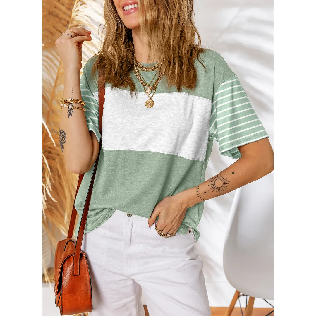 ·Feature: Color block tops, short sleeve tunic, round neck shirts, casual, cute and stylish. Color block design is classic and never out of the date. The stitching of classic colors has a strong contrast, which makes you look more cute and attractive.