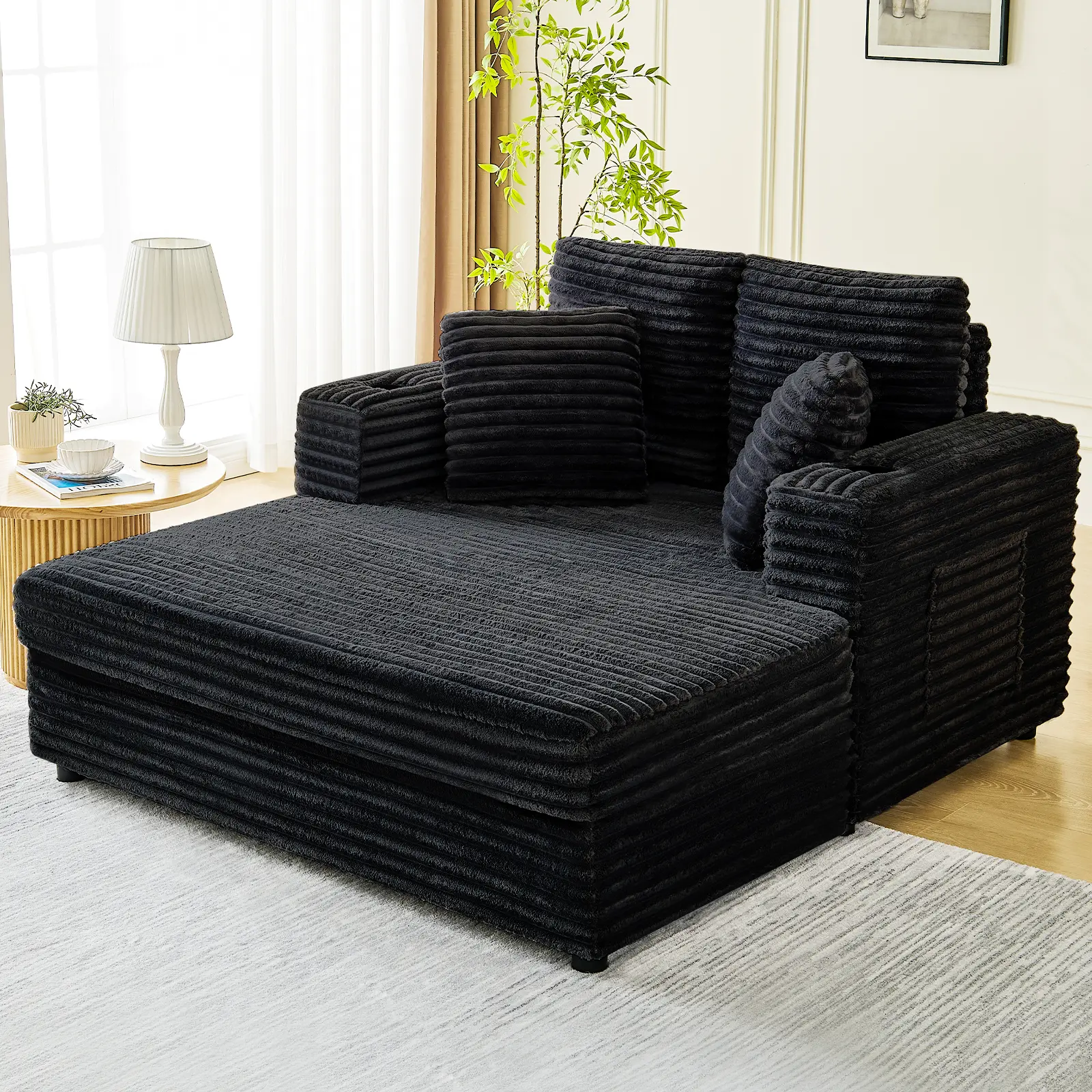 The Oversized Chaise Lounge Chair is a perfect blend of style and comfort. It measures an impressive 49" and features a plush faux fur upholstery. This beige sofa bed offers a luxurious feel, making it ideal for lounging or sleeping. The deep seat design ensures you're comfortable while reading or relaxing. It's versatile for living rooms or bedrooms.