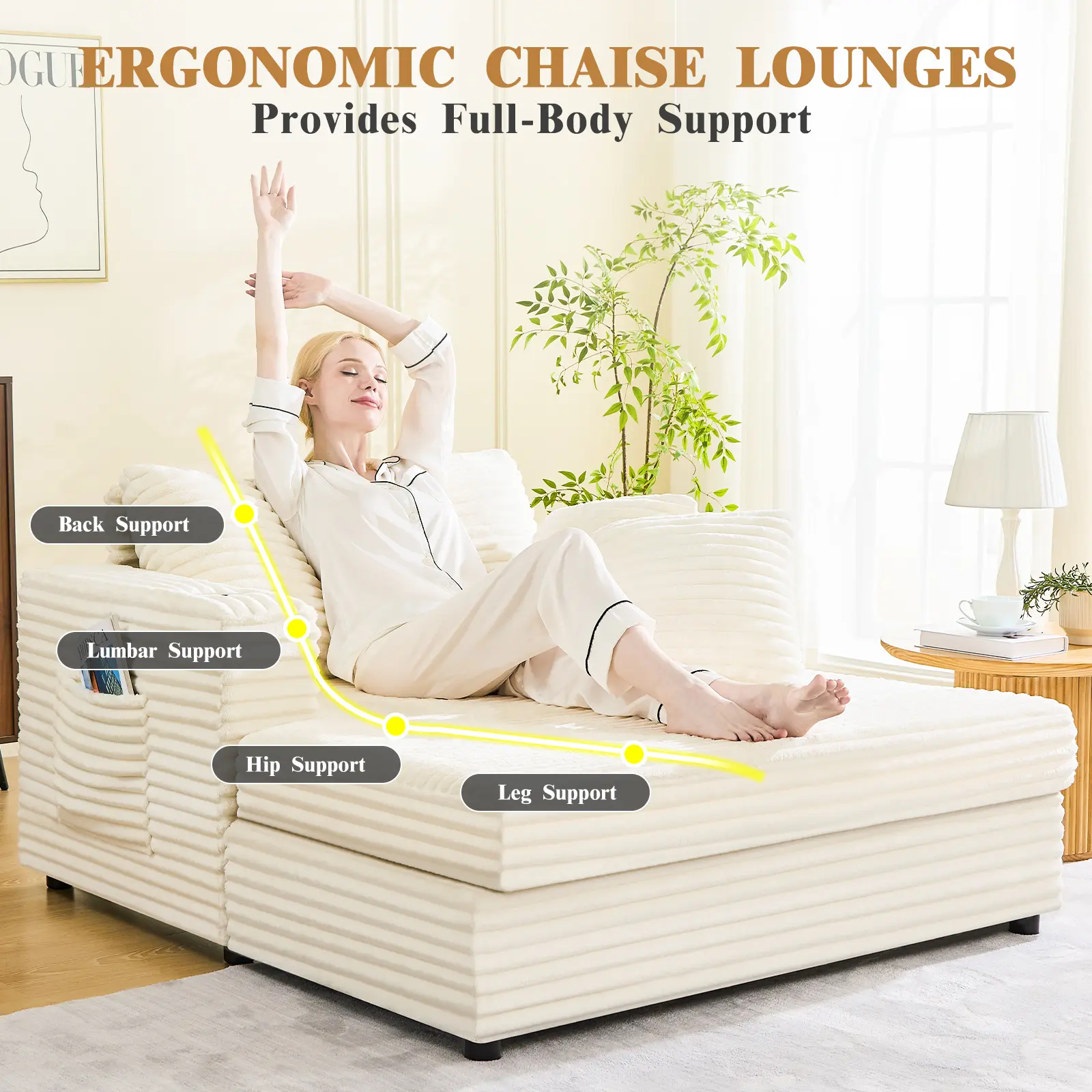 Transform your living space with this chaise lounge. Its size and design make it a standout piece. Whether you're in the living room or bedroom, this beige sofa bed adds a touch of elegance. Enjoy the comfort of a deep seat reading chair, perfect for long hours of reading or relaxation.