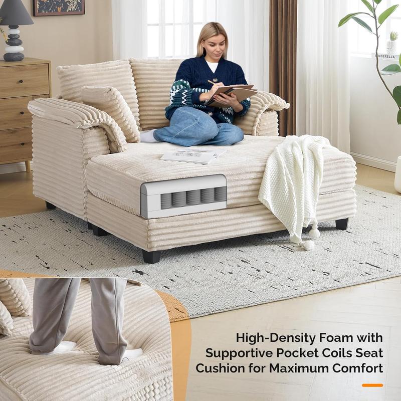 Premium Corduroy Upholstery--This lounge chair is expertly crafted with high-density foam, delivering exceptional comfort and excellent shape retention over time. Upholstered in soft, durable corduroy fabric, it offers a luxurious feel that is both skin-friendly and visually striking. The sturdy wood and metal frame ensures remarkable stability and long-lasting endurance. This lounge sofa is designed to meet the everyday needs of your entire family.