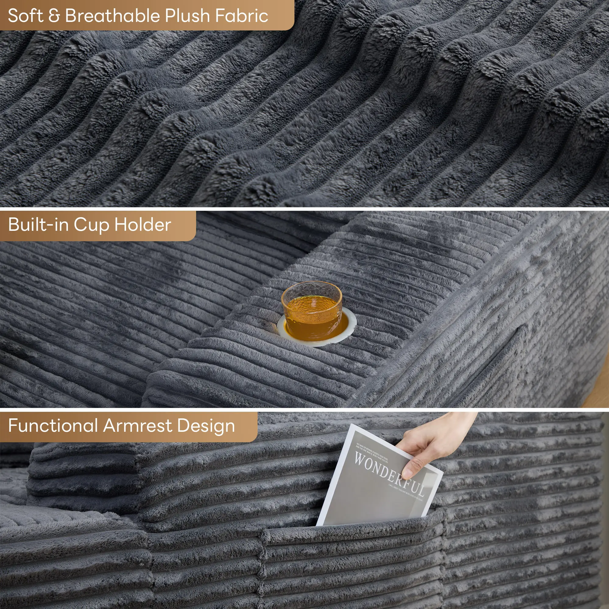 ·CLOUD-LIKE CORDUROY COMFORT: Indulge in sumptuously soft, skin-friendly corduroy upholstery. This luxurious fabric feels like a warm embrace with its inviting texture and subtle sheen, creating a cozy, visually stunning centerpiece for your space that delivers year-round comfort.
