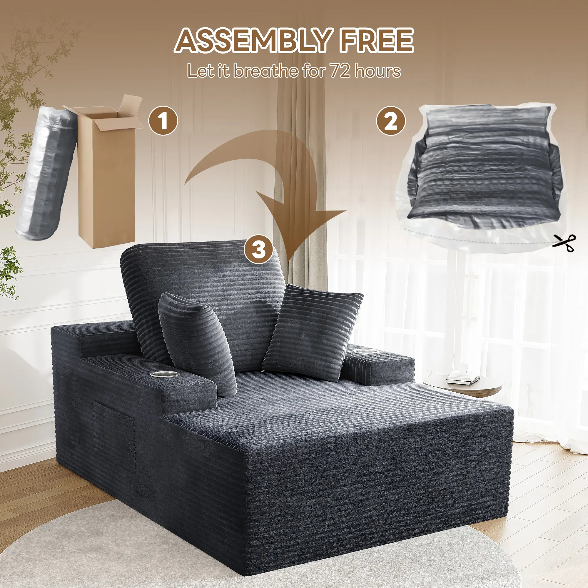·NO ASSEMBLY REQUIRED: Embrace instant comfort! Arrives compressed in one box. Simply unbox, position, and allow your plush "cloud couch" to expand to its full, glorious form within 72 hours – pure relaxation starts now!