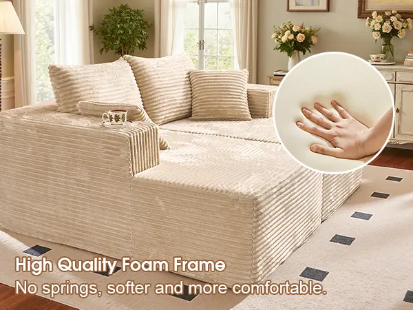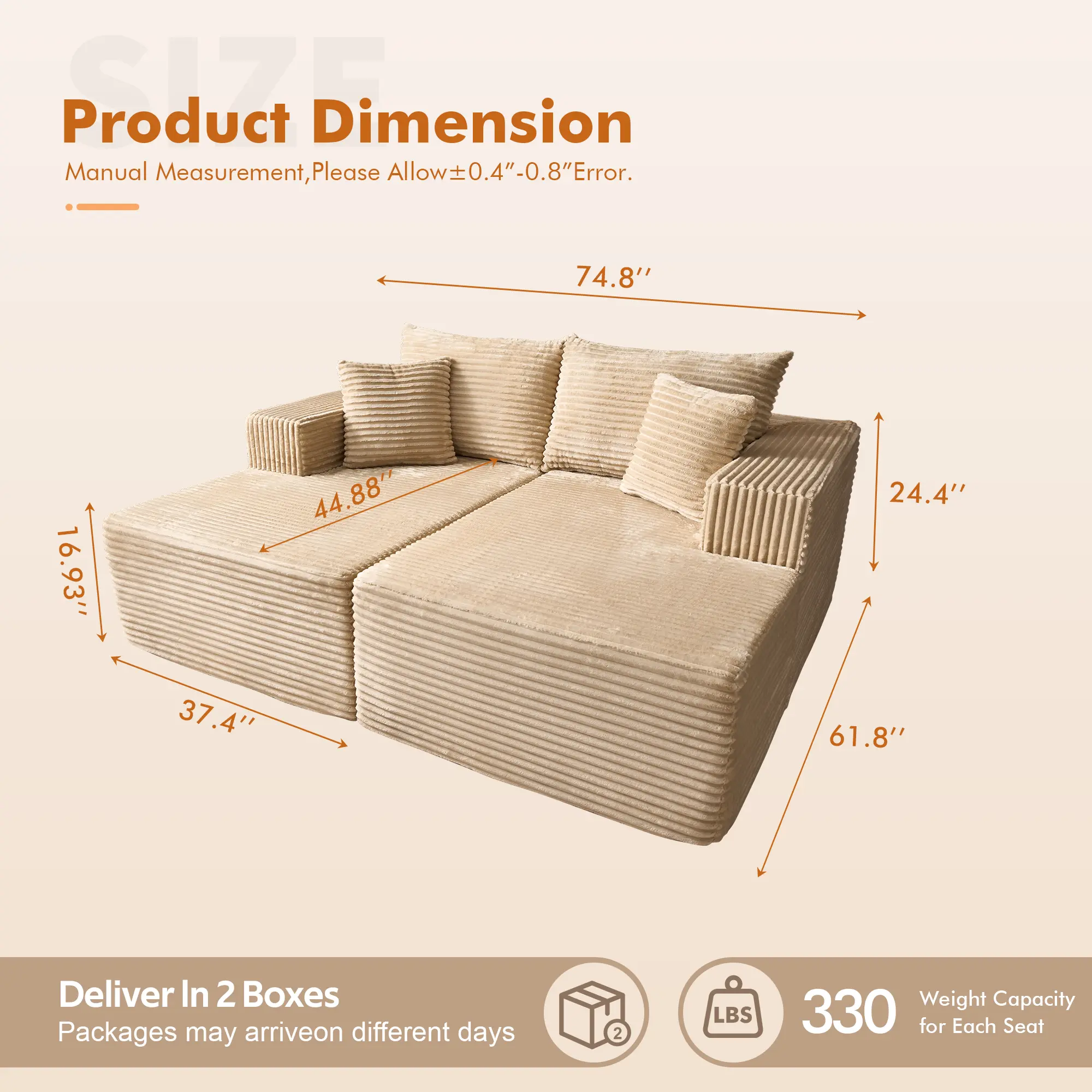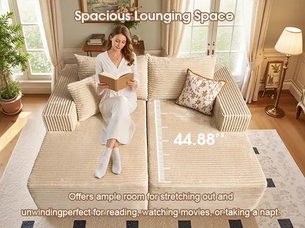 ✨ High-Quality Corduroy Fabric: This indoor chaise lounge sofa is upholstered in soft, skin-friendly corduroy fabric. It enhances both comfort and visual appeal, making it a stylish addition to any living room. No assembly required, saving you time. Perfect for those who value convenience without compromising on style.