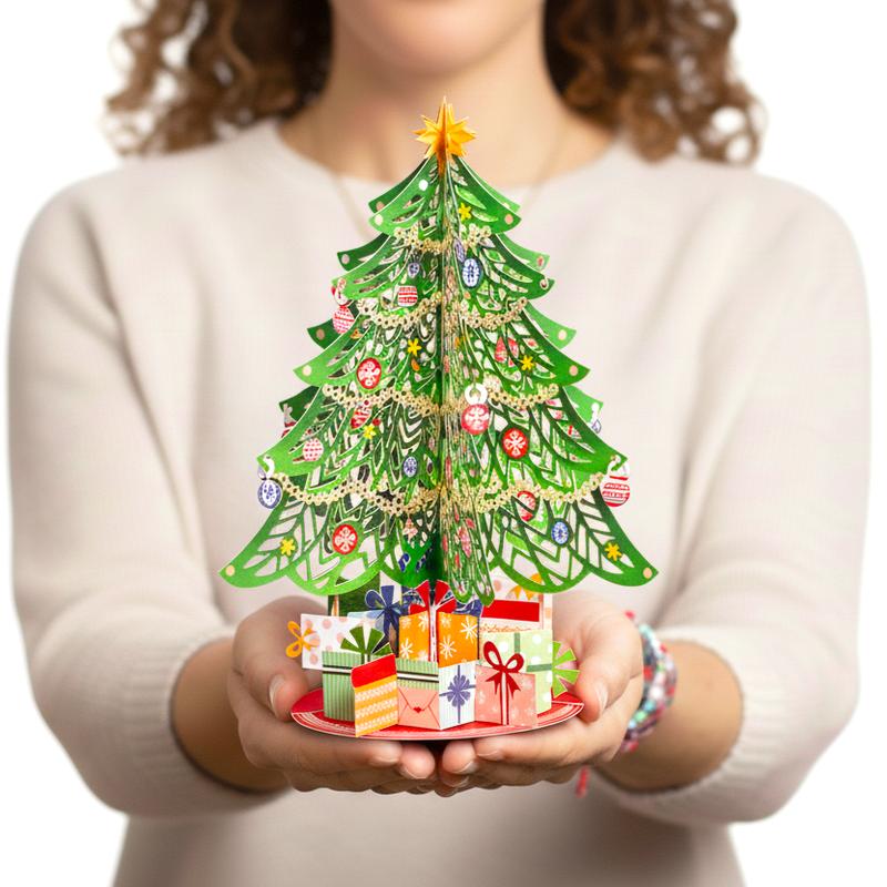 Great looking card very well made hand cut hand cut ornaments on it the tree pops up when you open the great .