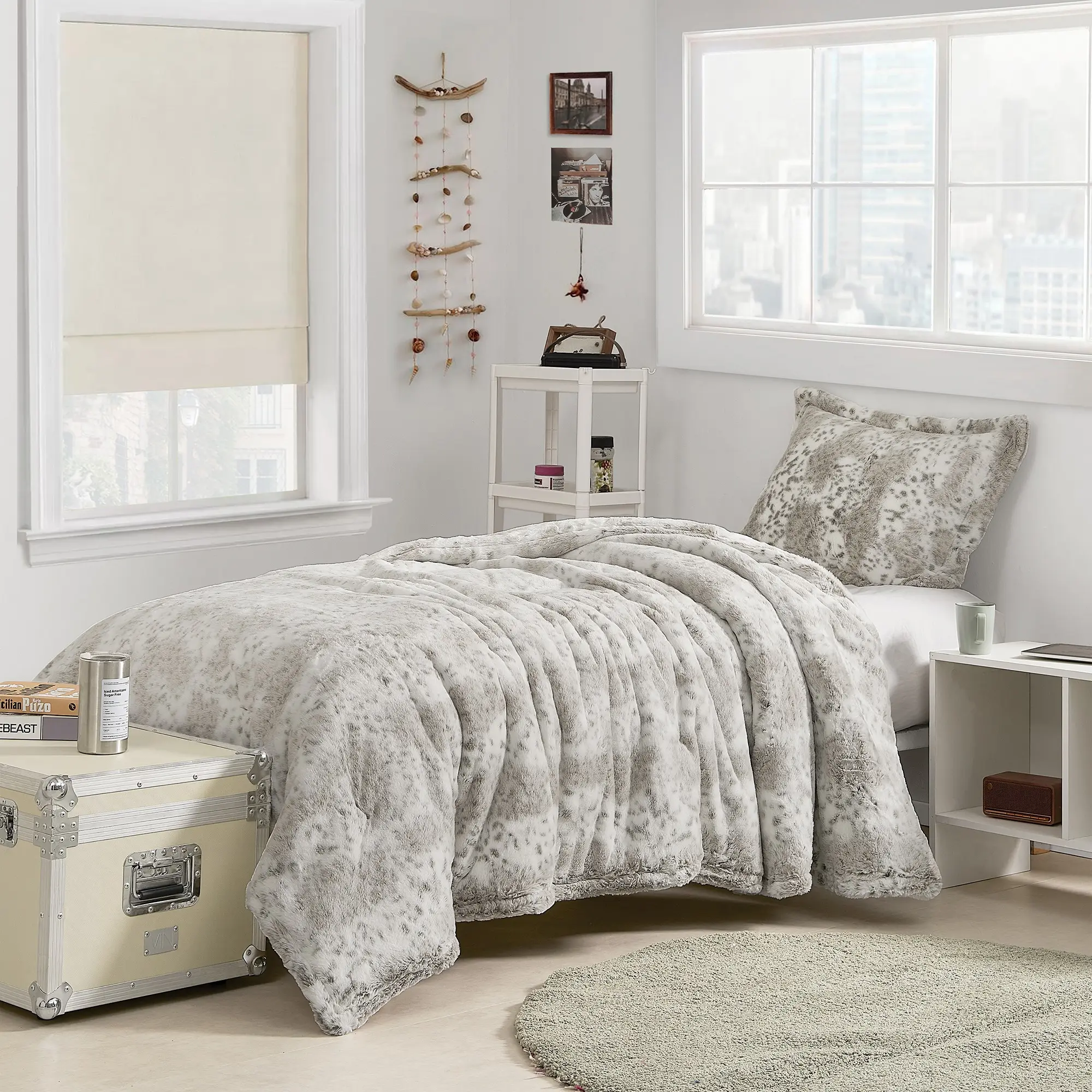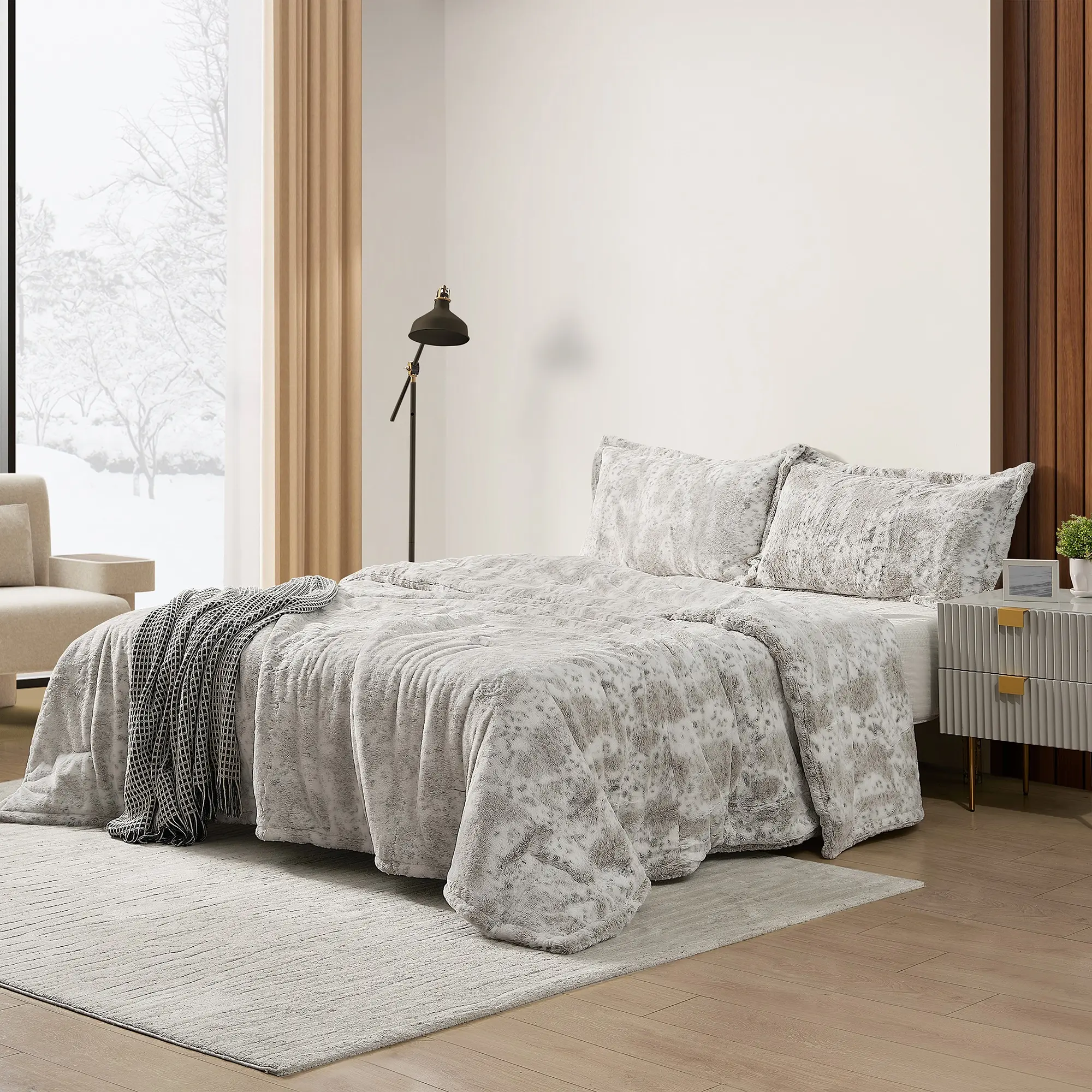 Inspired by our Snow Leopard Coma Inducer®. Our Coma Inducer® super fans loved the Snow Leopard so much that we thought that it's only natural to develop a Snow Lynx comforter. Like Snow Leopards, the Snow Lynx isn't just a beautiful animal with a great coat, they also have the ability to stand up to the absolute worst winter conditions. Their thick, plush fur is the perfect inspiration for a Coma Inducer® comforter. Beauty combined with practical warmth has led to the creation of this one-of-a-kind Snow Lynx Coma Inducer®. This purr-fectly plush comforter is made with an incredibly thick 400GSM soft fur that reverses to the same cozy warm plush to create the ultimate bedding experience. You may not have to deal with temperatures as cold as they do (we're talking in the negatives), but who wouldn't want to snuggle up with that thick plush Snow Lynx-like coat? Snow Lynxes are rare, majestic animals and modeling this comforter after them just makes sense. Your bedding will be transformed with the help of the incomparable comfort of our Snow Lynx Coma Inducer®.