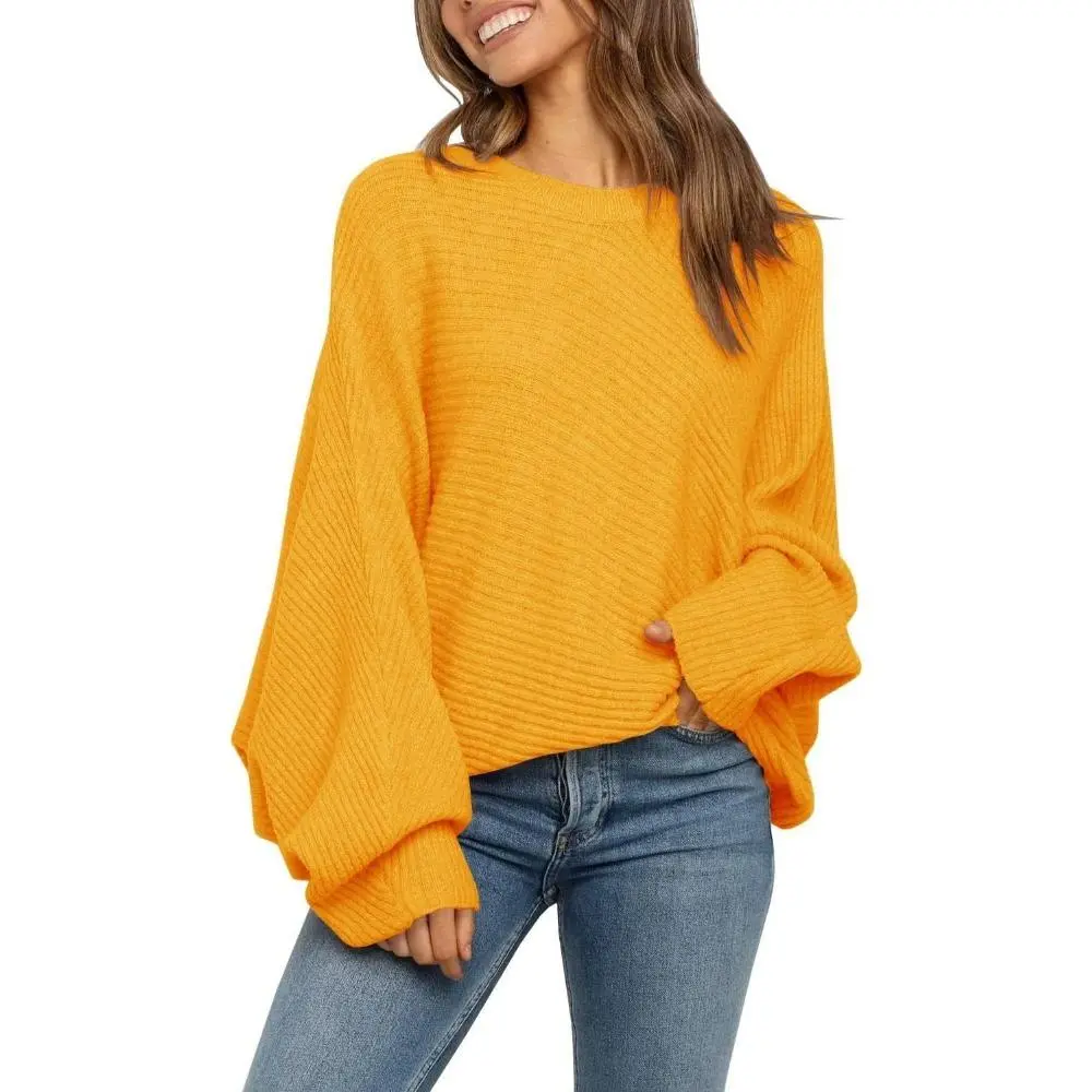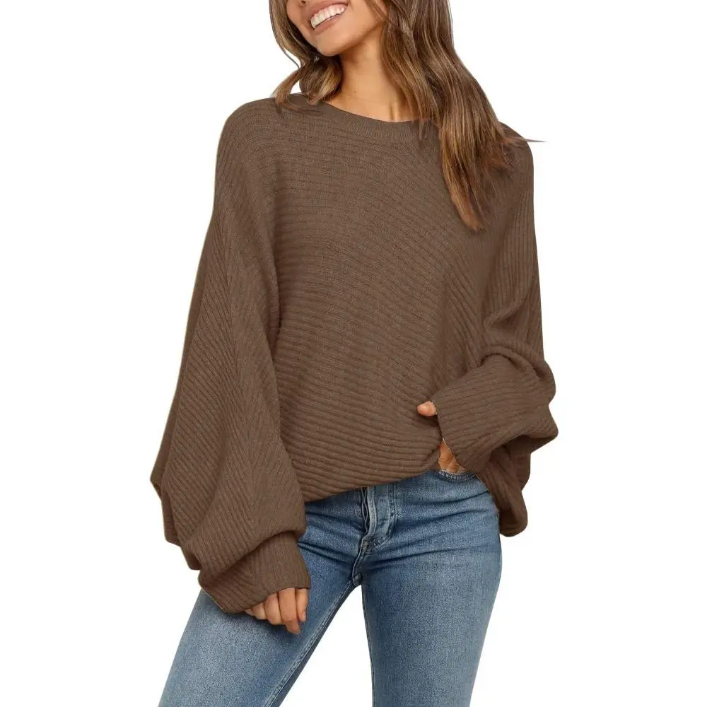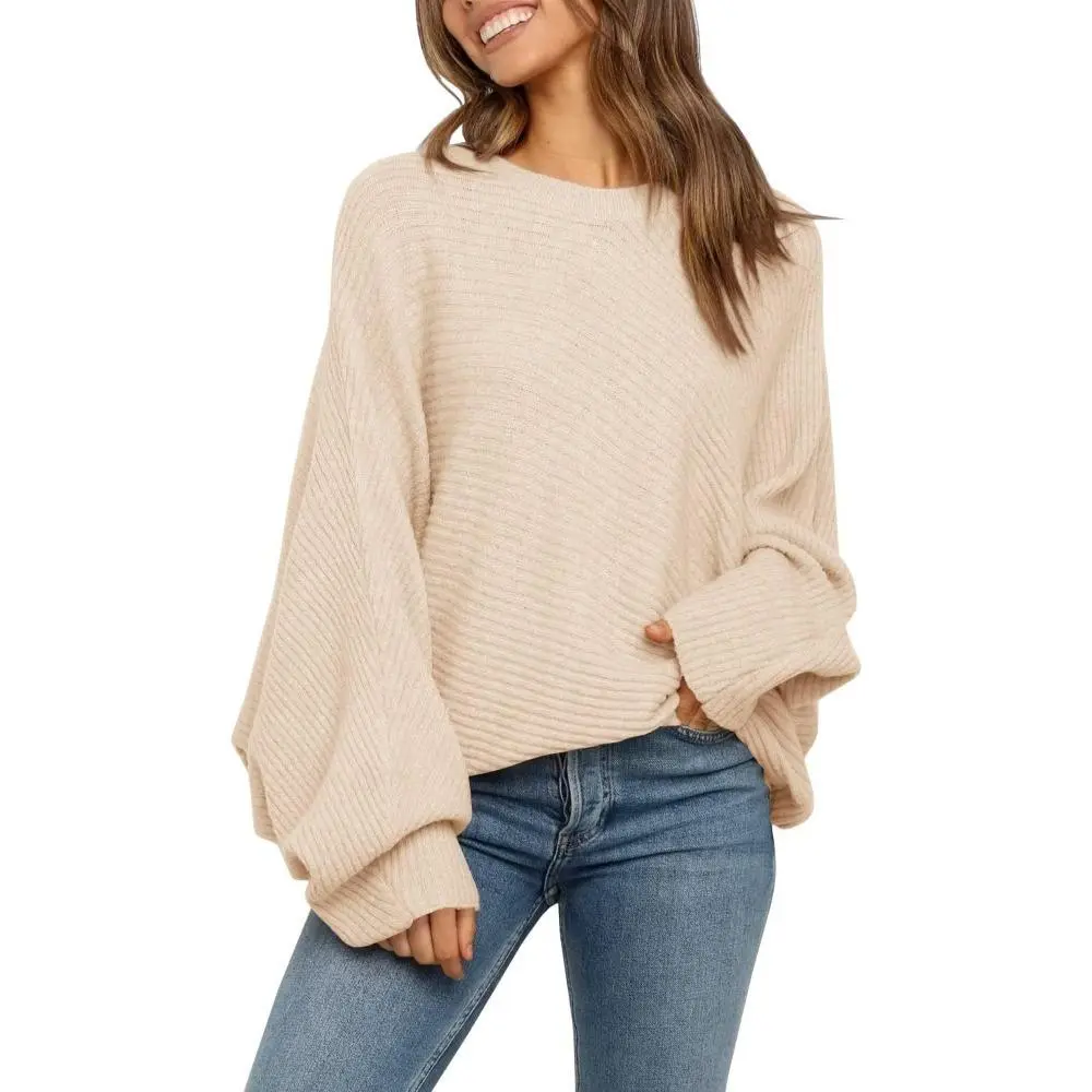 Long Sleeve Oversized Crew Neck Batwing Sleeve Sweater Tops for Women