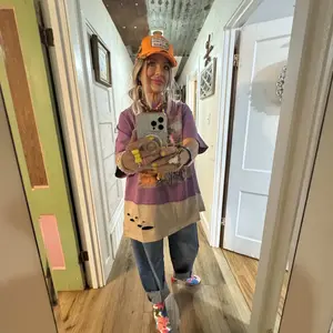 I love this company and products, the material is soft like a thick tee shirt stye, fits perfectly with the length being just where I want it to be able to wear tights or shorts with it . Love how it’s original design with the sparkling stones not to mention the splash of colors 😉 got the purple too going back for the grey oh and it came in two days that was in a flash .. thank you 😊