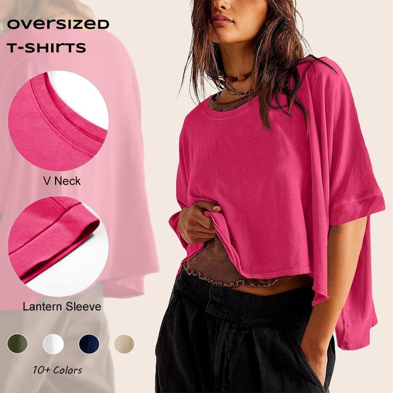 Imily Bela Womens Oversized T-Shirts Cropped Summer Casual Short Sleeve Loose Fit Tee Tops