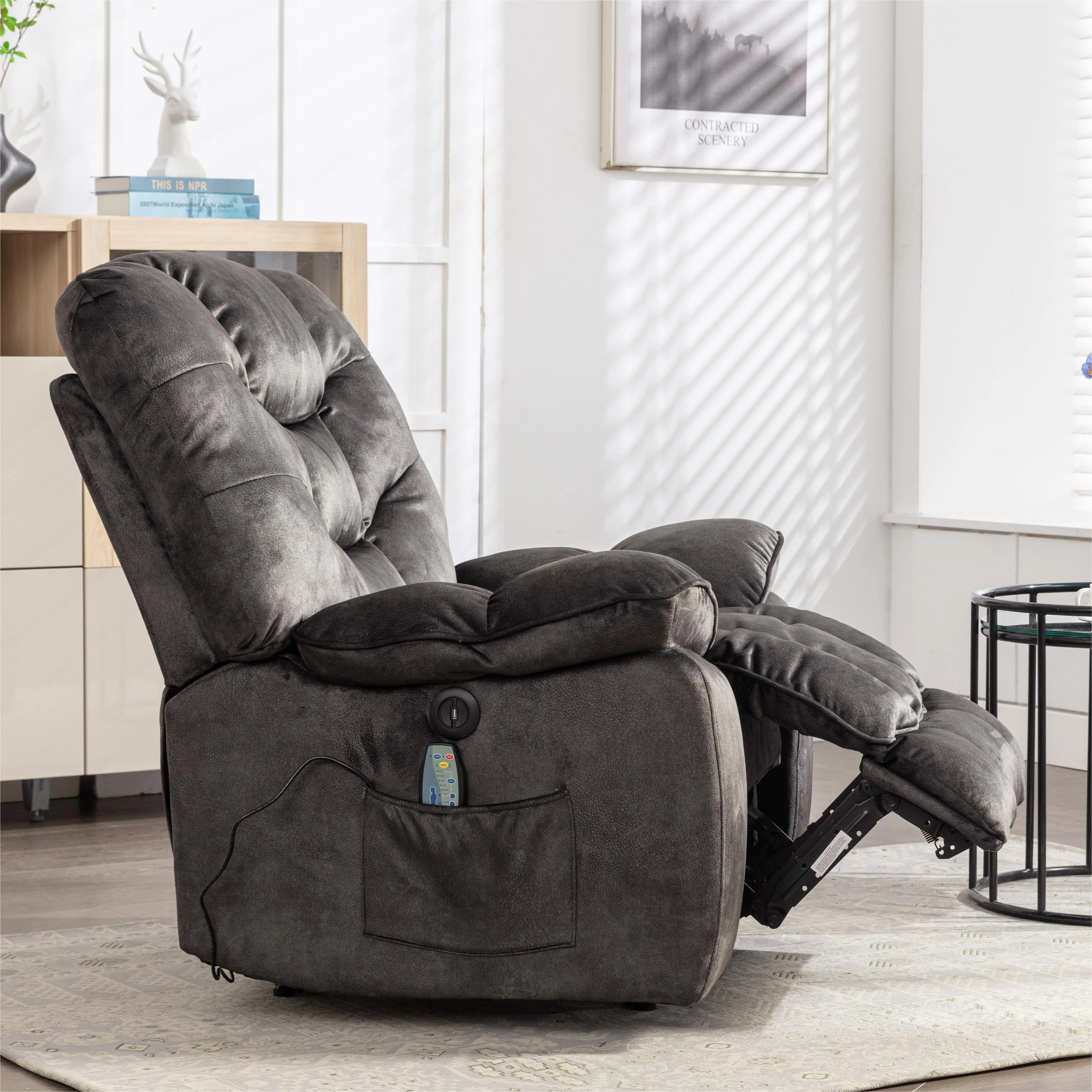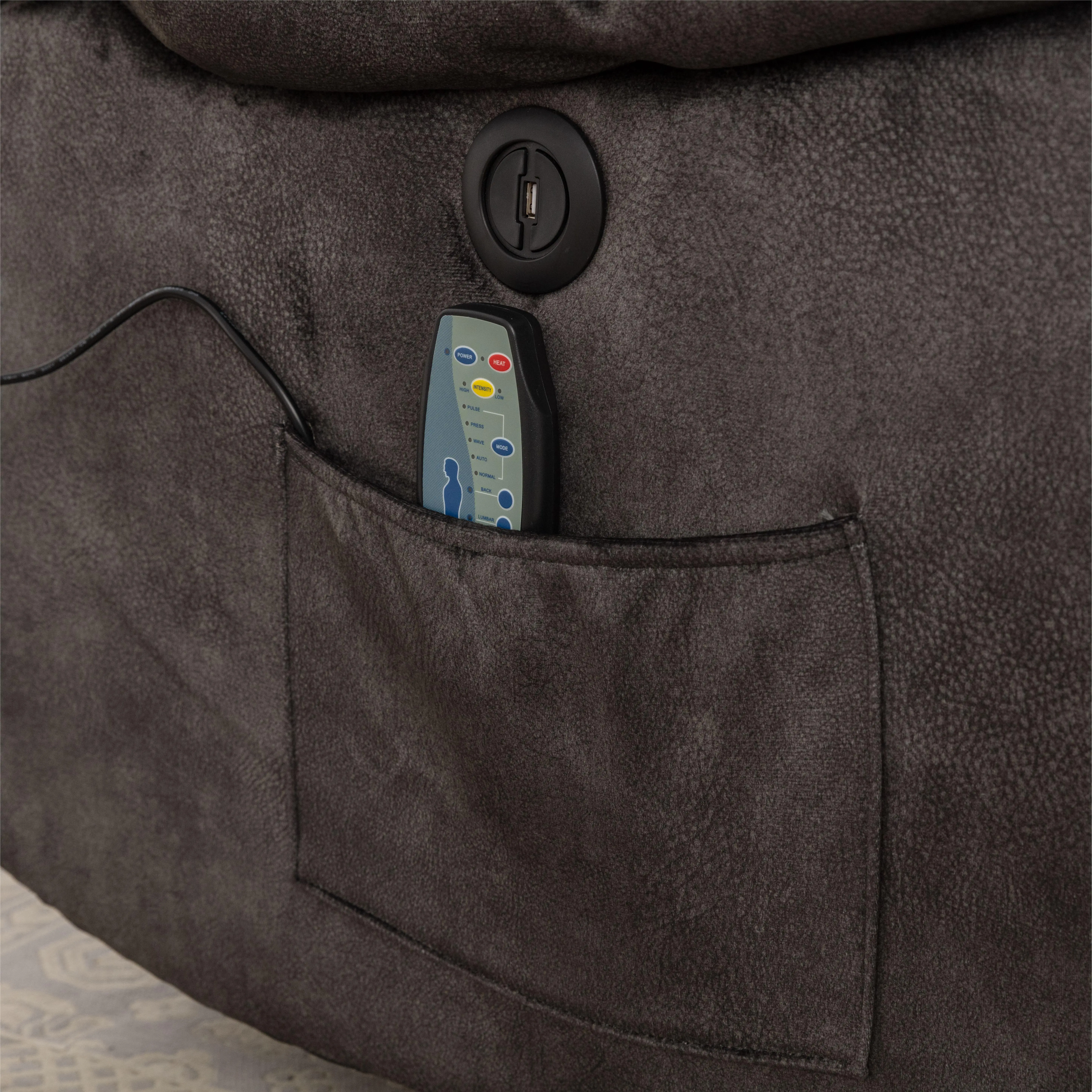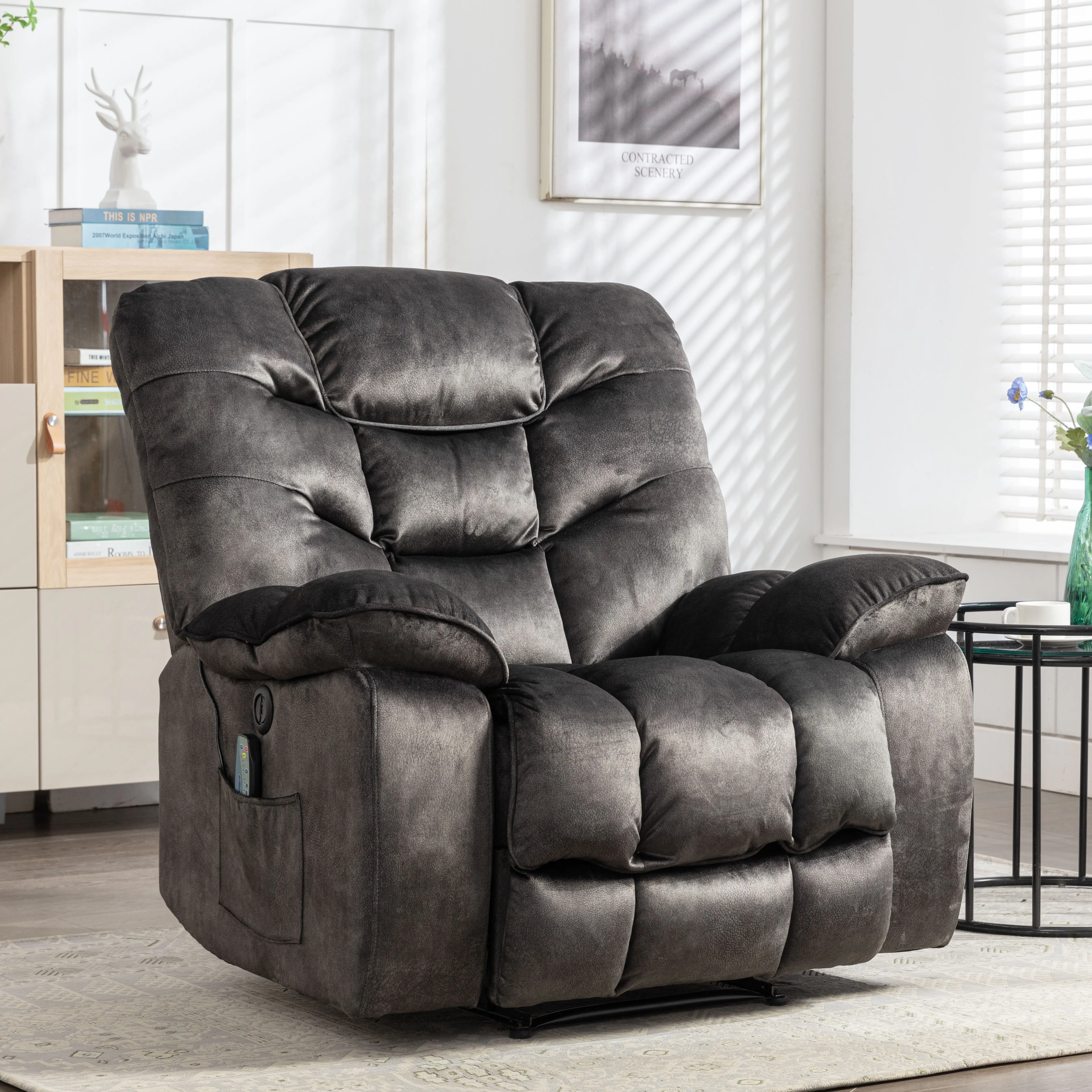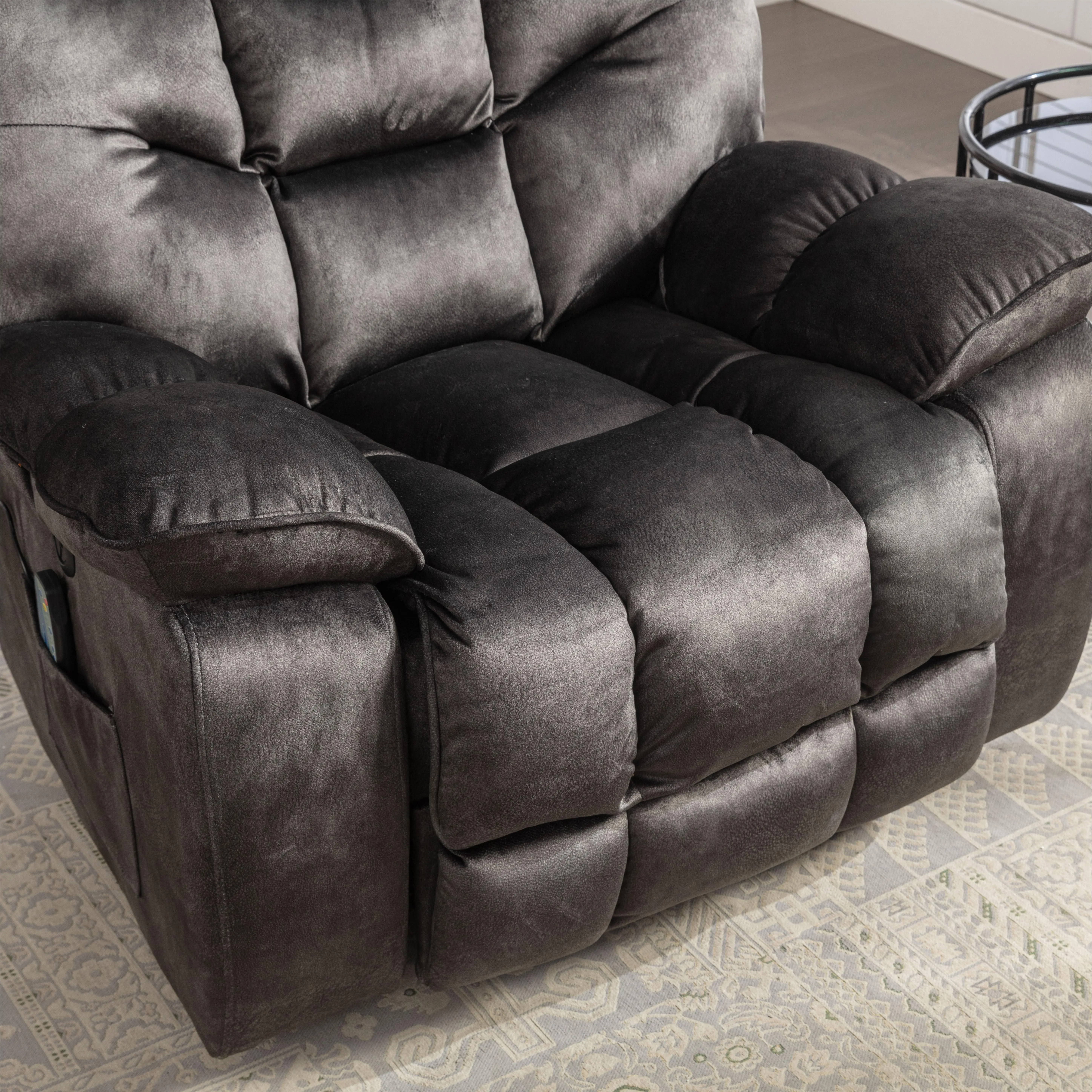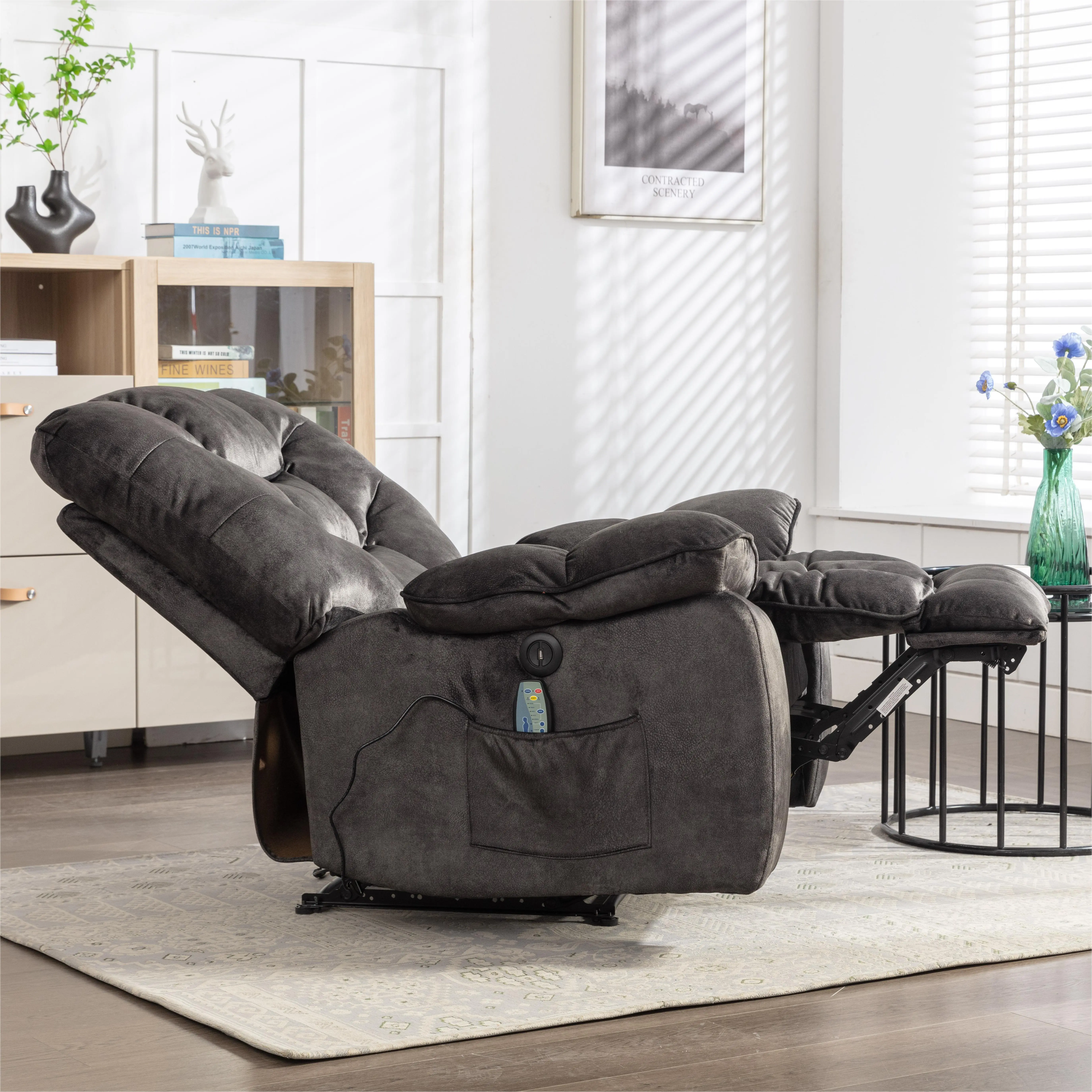 Ebello 37.8" Wide Breathable Fabric Oversized Electric Reclining Chair with Massage and Heat and USB Port, Grey