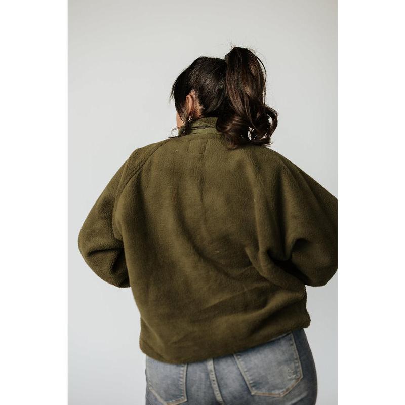 We proudly introduce our oversized fleece jacket.  Cute snap detailing, 3 functional side pockets.  This product is perfect for staying cute and comfortable this season! Oversized Fleece Jacket: No Stretch - Olive