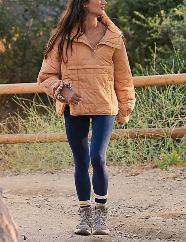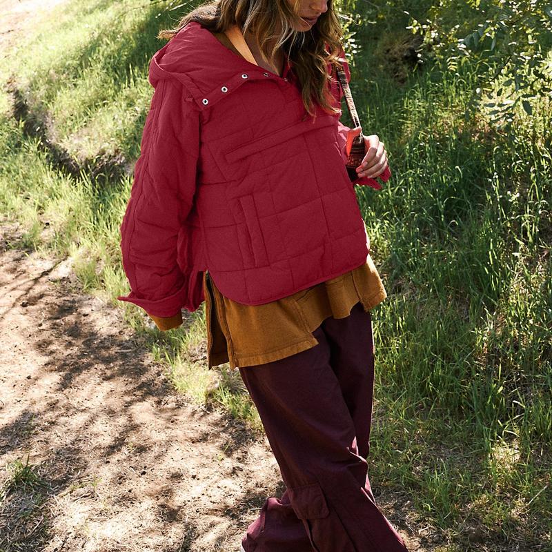 ✨ Elevate your style with this quilted puffer jacket! This jacket boasts a cute hooded design, side split, and half button closure. It features two handy pockets and adjustable cuffs. The solid color and loose fit make it perfect for chilly fall and winter days. Lightweight and cozy, it ensures a comfortable wearing experience. Ideal for casual outings, workouts, parties, and vacations.