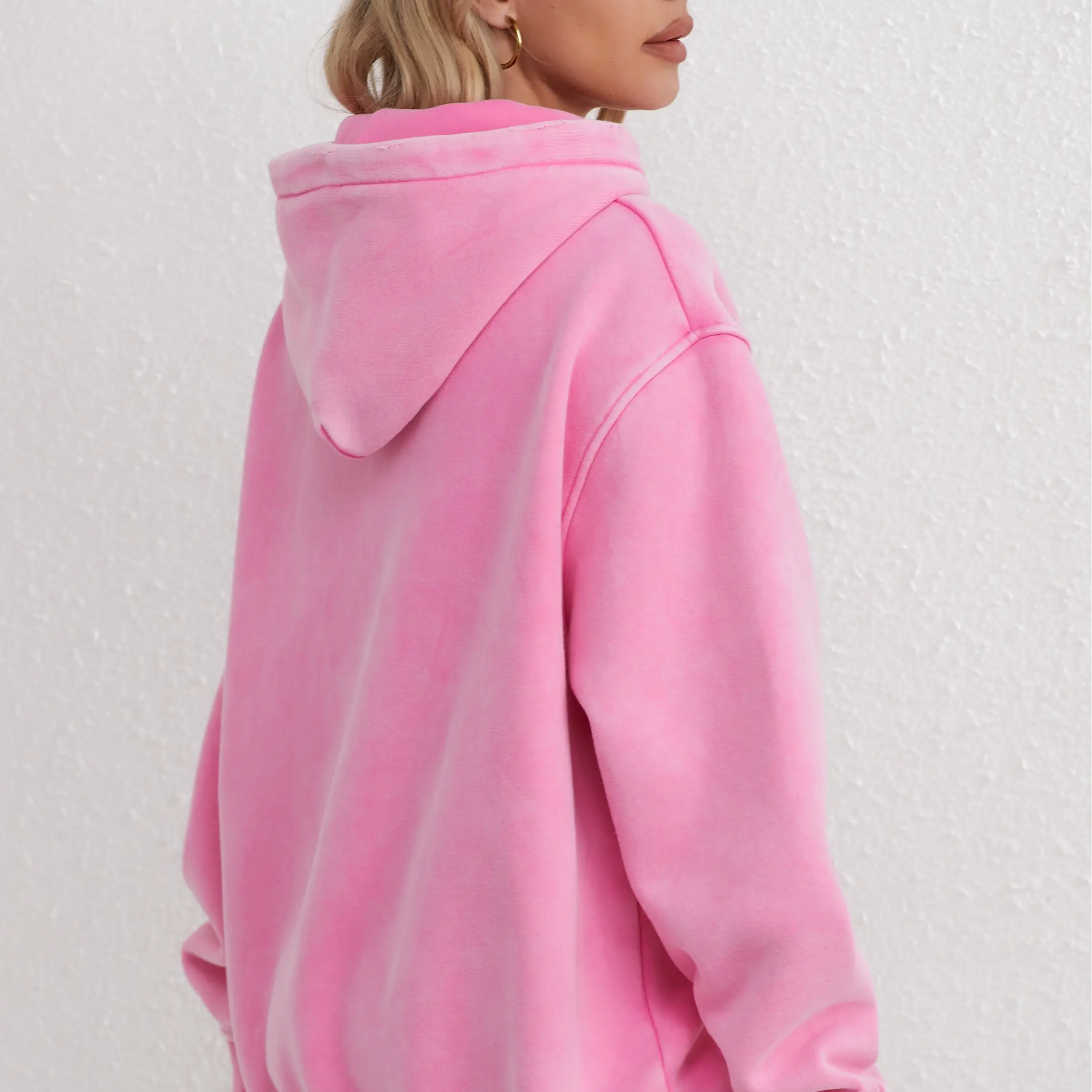 This is a very comfy hoodie that is thick and good quality. I love the pale pink color!