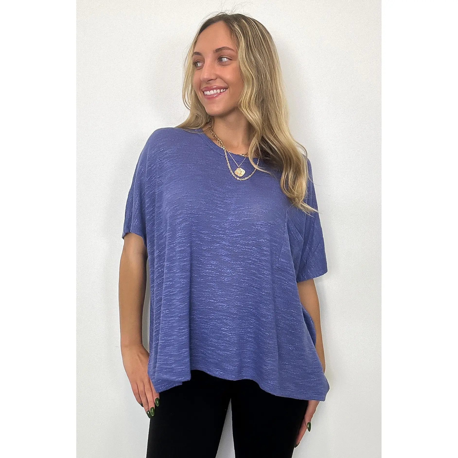 The material feels amazingly soft and comfortable. Baggy, boxy fit with almost a Dolman sleeve. I would have like the sleeve a bit longer