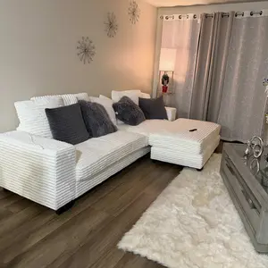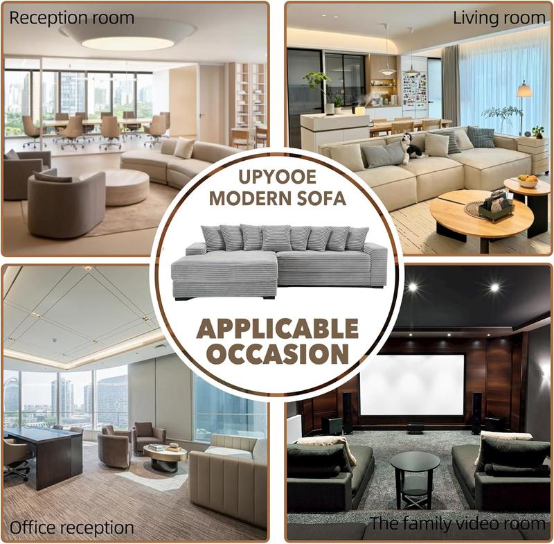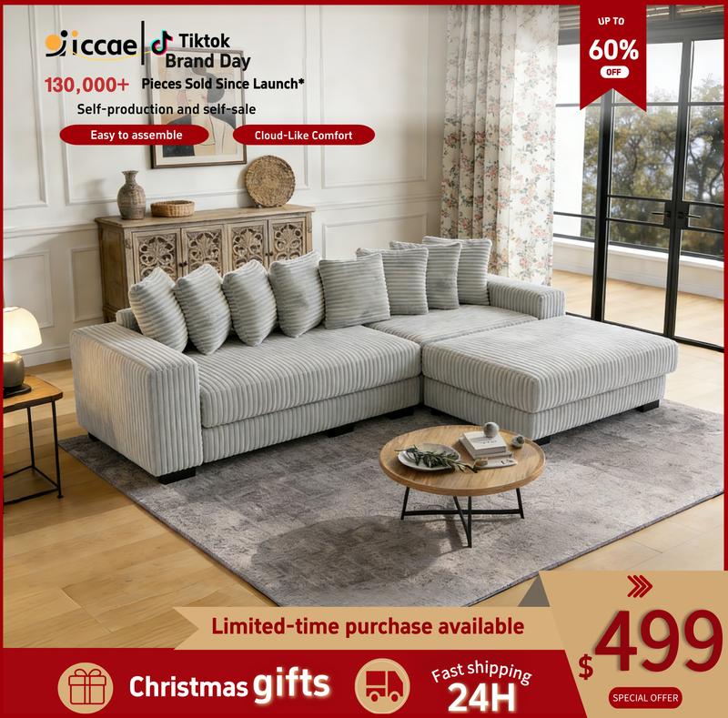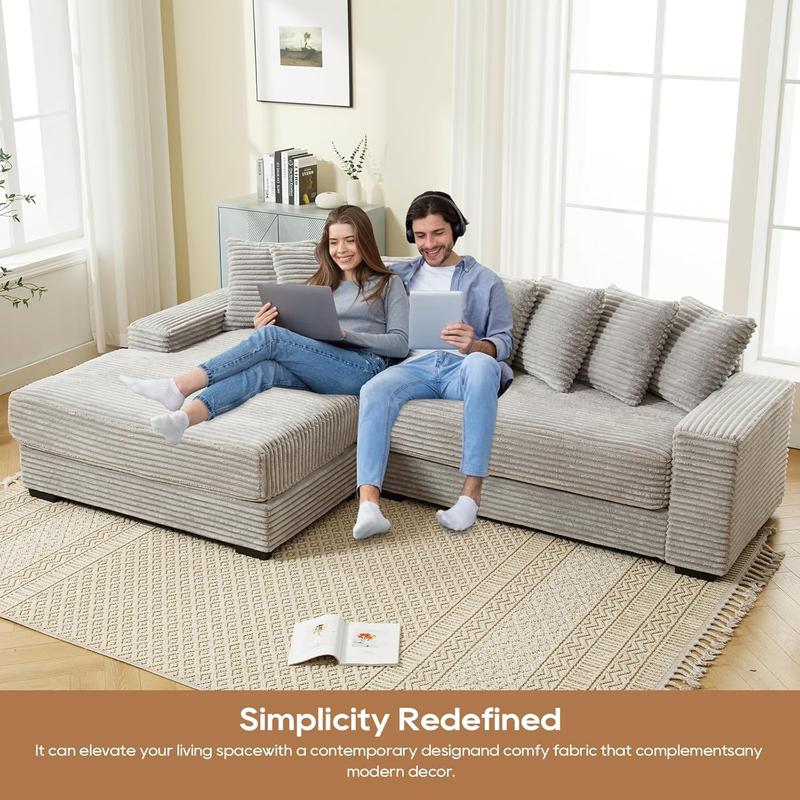 1.Elevate your living area with this stylish L-shaped sofa, crafted from luxurious, textured corduroy fabric.