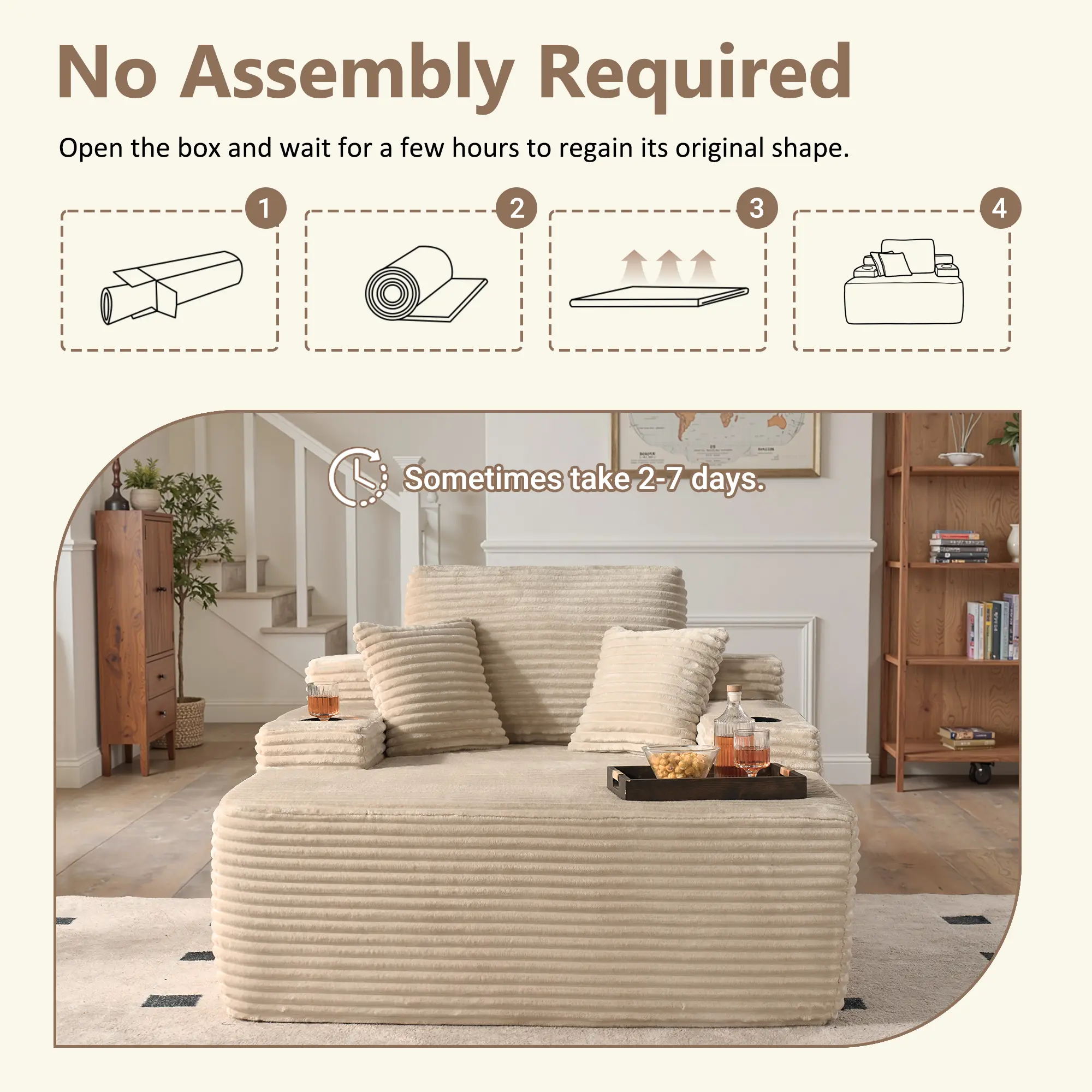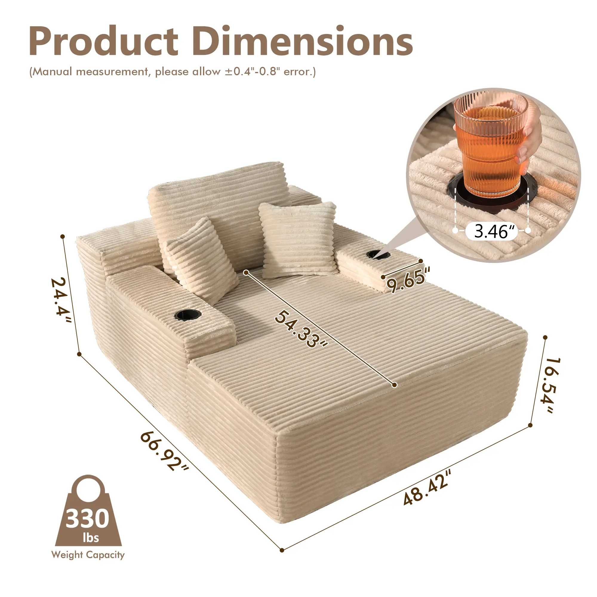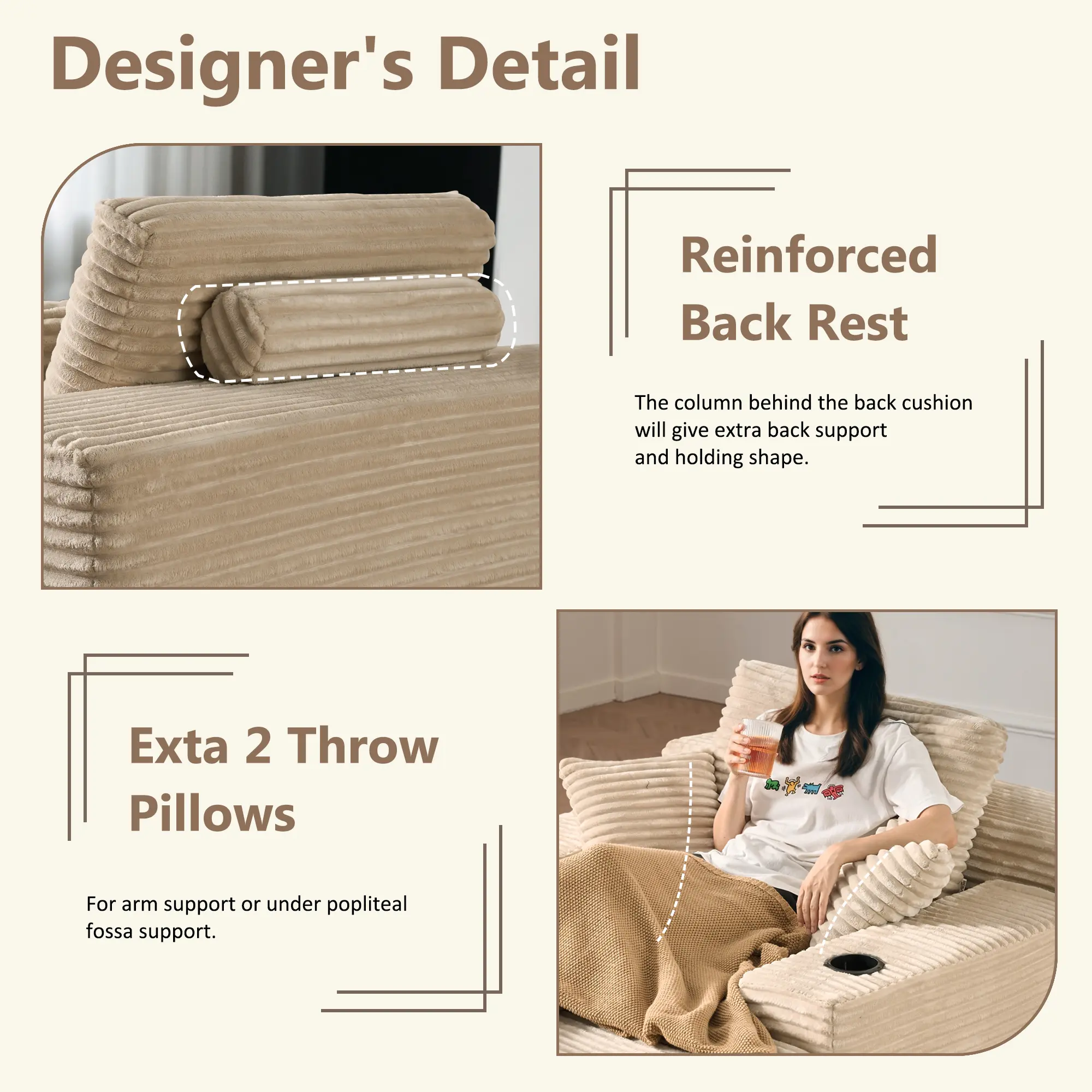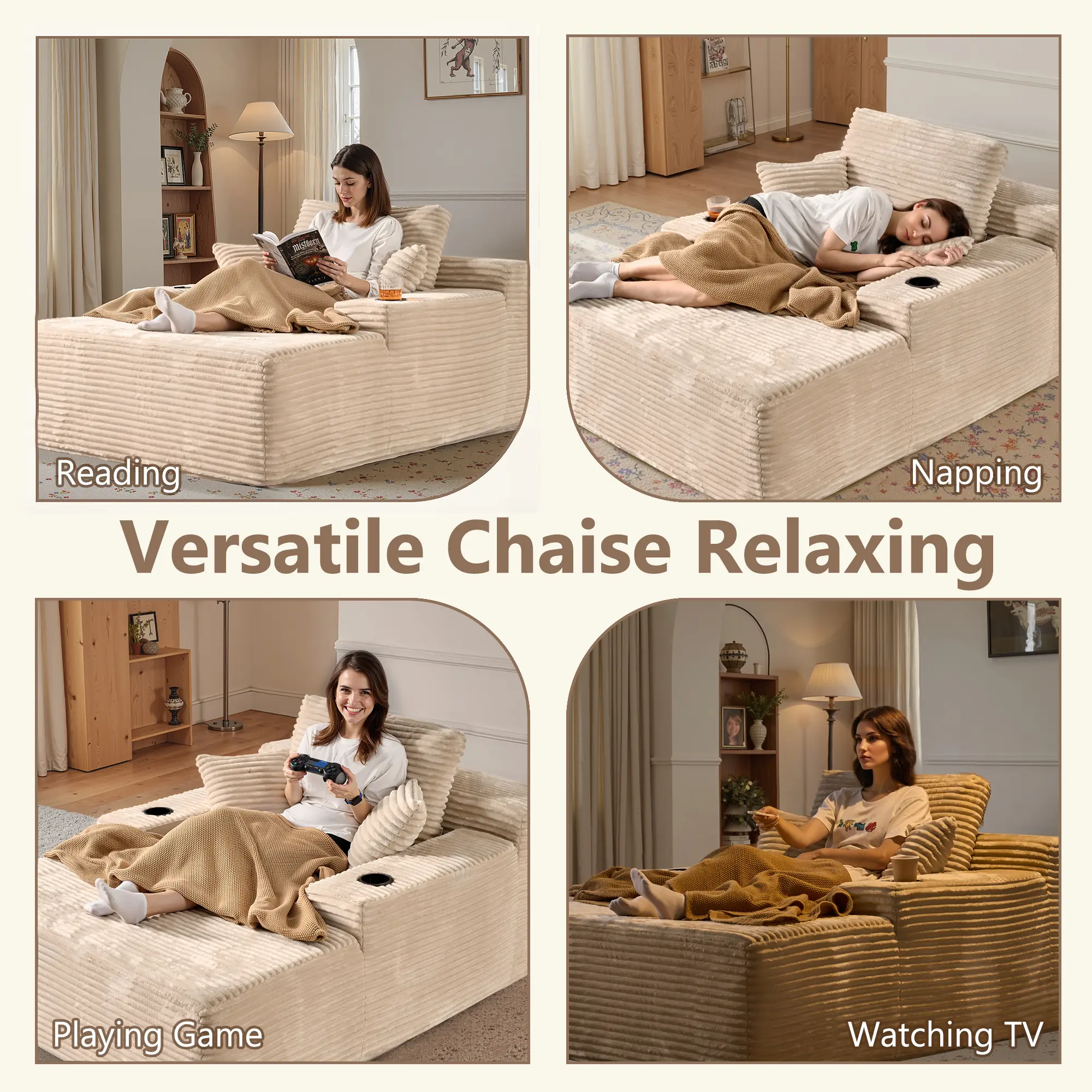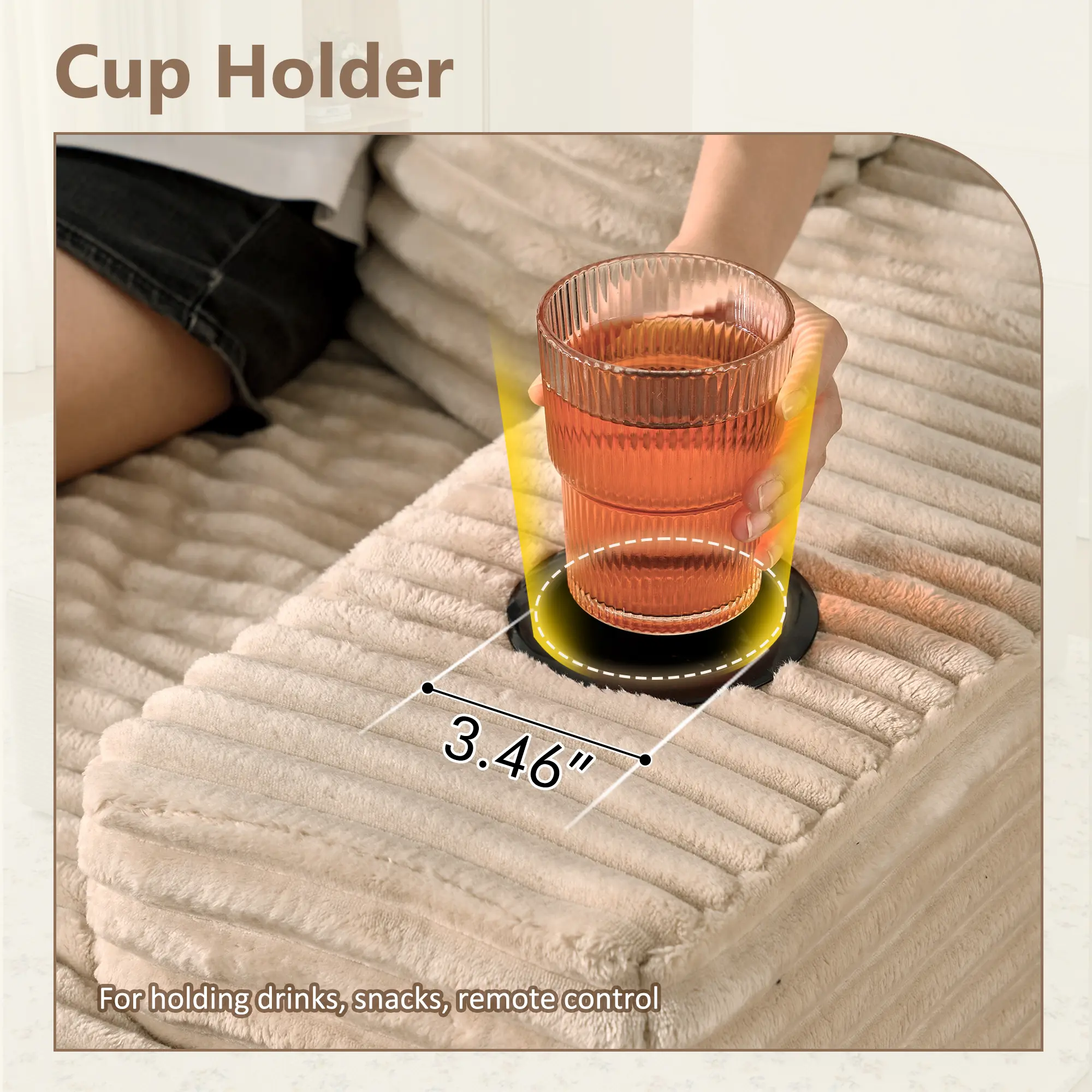 Transform your living area with the 67'' Corduroy Chaise Lounge Sofa Bed. This oversized upholstered couch features a plush, fluffy faux fur cloud design. It's perfect for indoor use, offering versatility for any room. No assembly is required, ensuring easy setup. Enjoy the convenience of a cup holder and a reading chair feature.