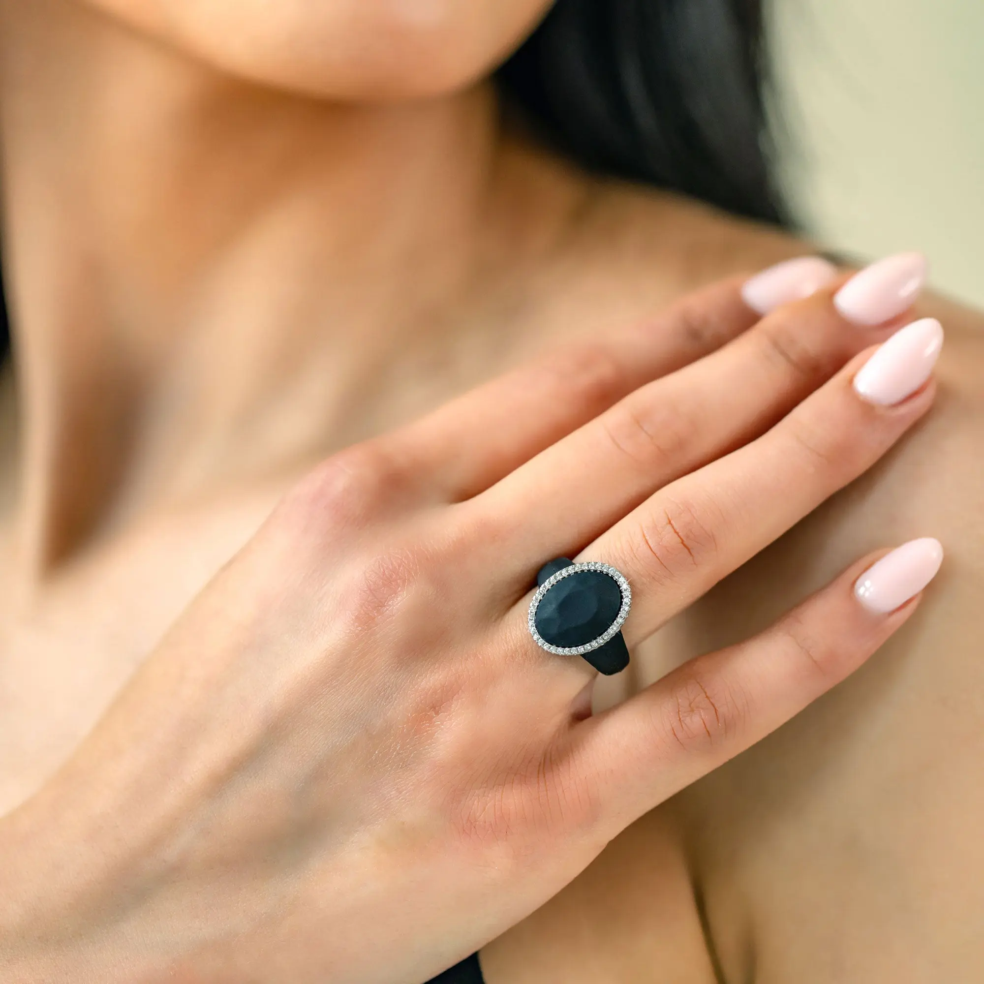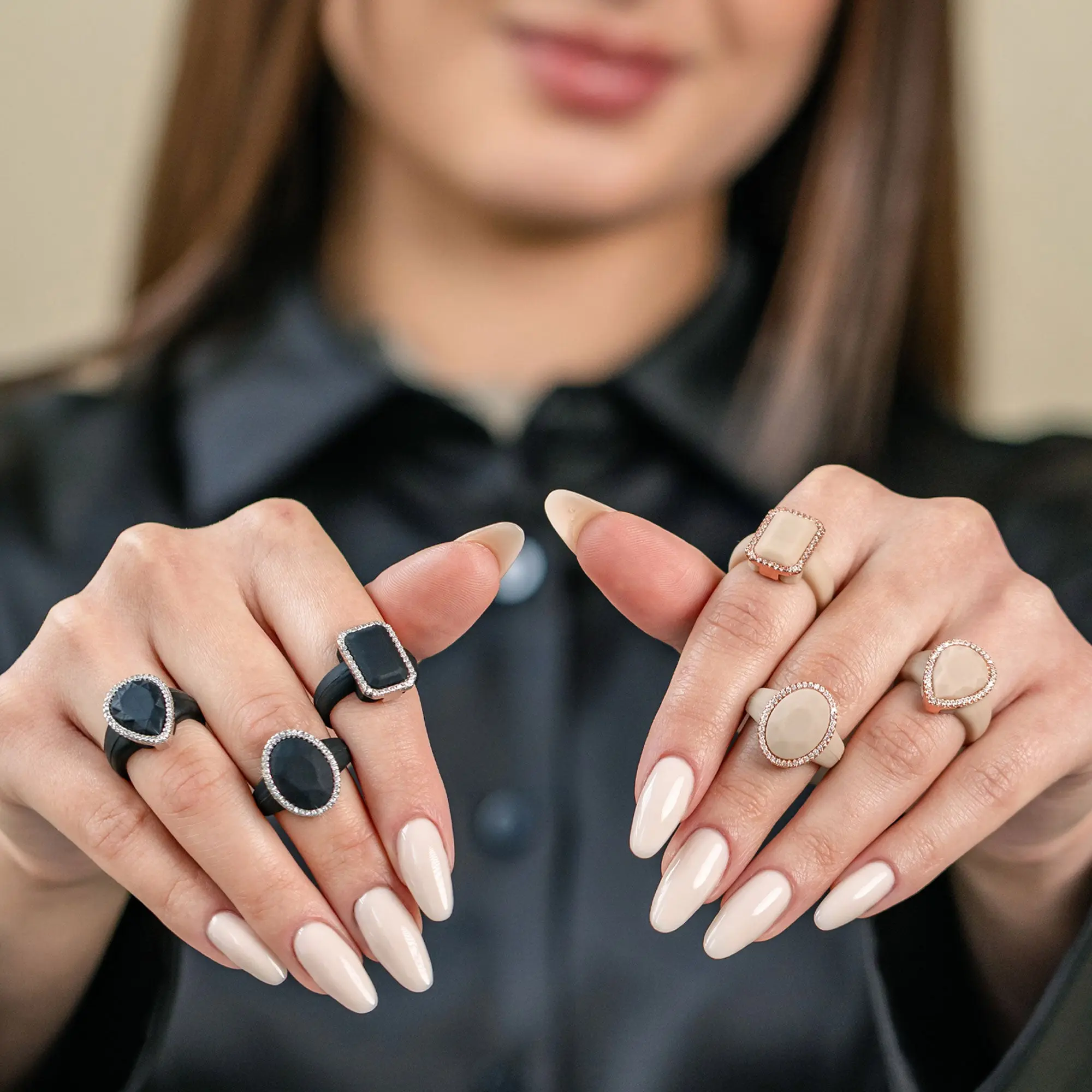 Make a statement with the Oversize Oval Silicone Ring, an eye-catching design, with a brilliant oval-cut shape, CZ stone, set in a metal frame and crafted from ultra-soft, silicone.