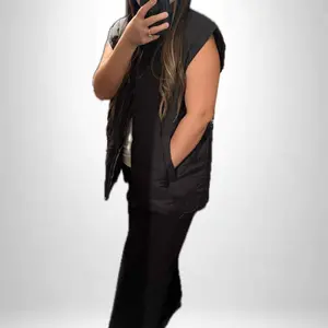 I love this vest, I sized down so it doesn’t look too oversized and it perfect for my outfits with leggings. It also keeps me really warm!