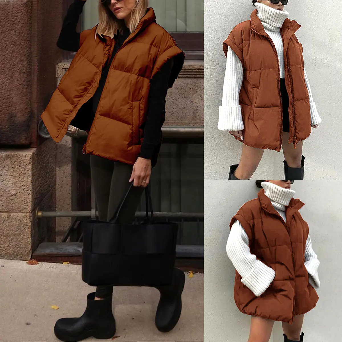 I love my new puffer vest! It is oversized so I downsized to M for a more fitted look although its still a bit large on me. I could've gotten the large for a still great fit and look.