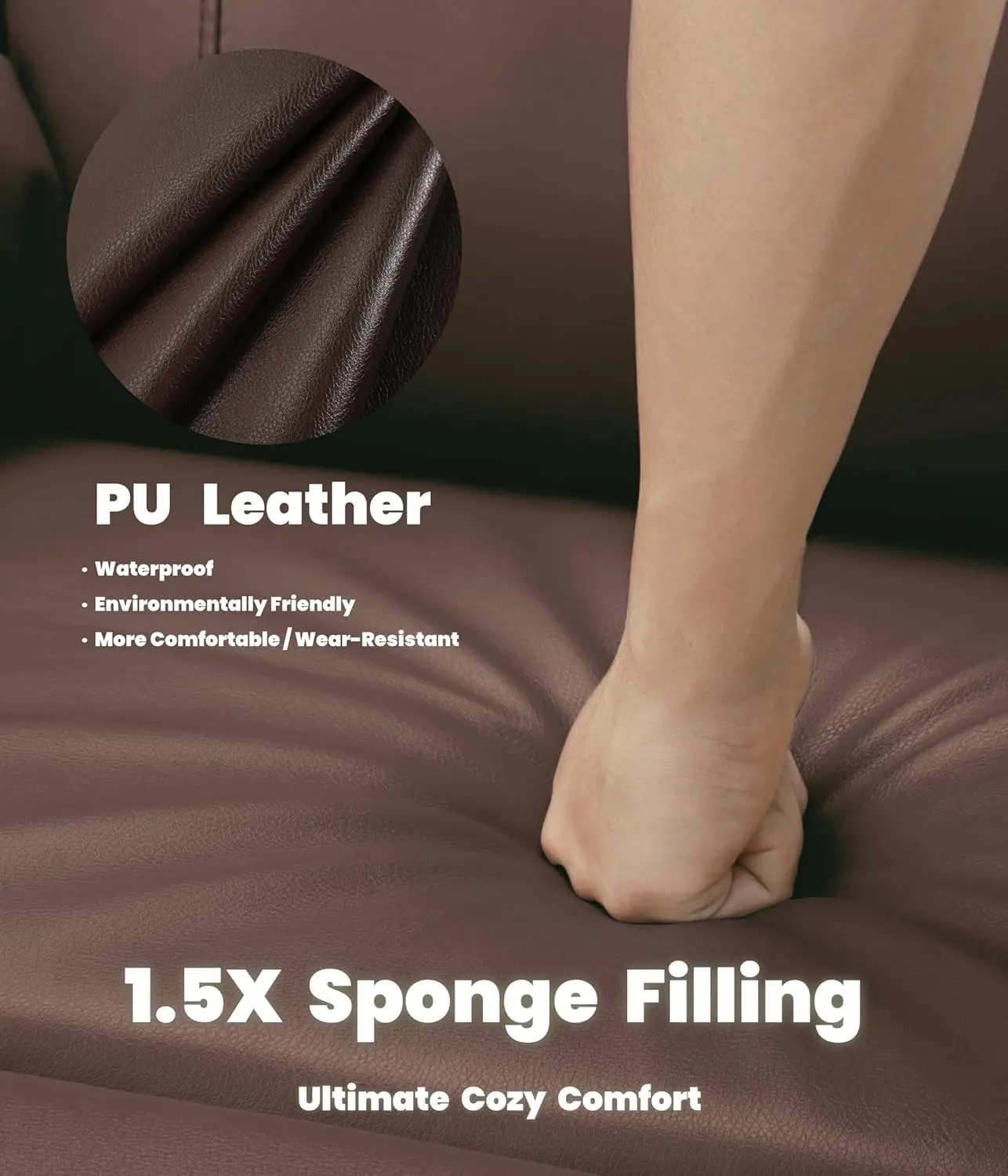 High-quality PU leather upholstery: sleek, easy-to-clean, and practical for any living space.