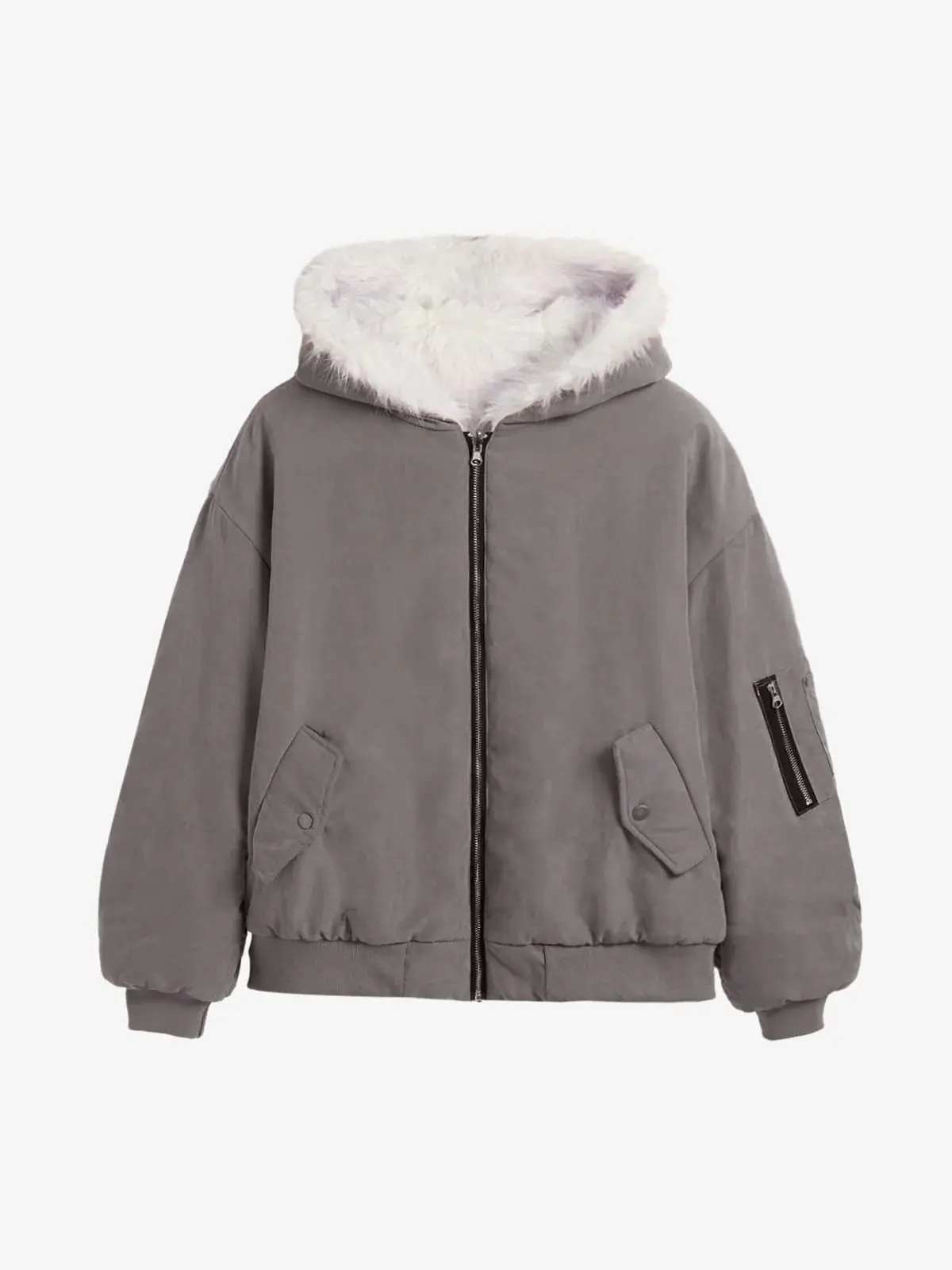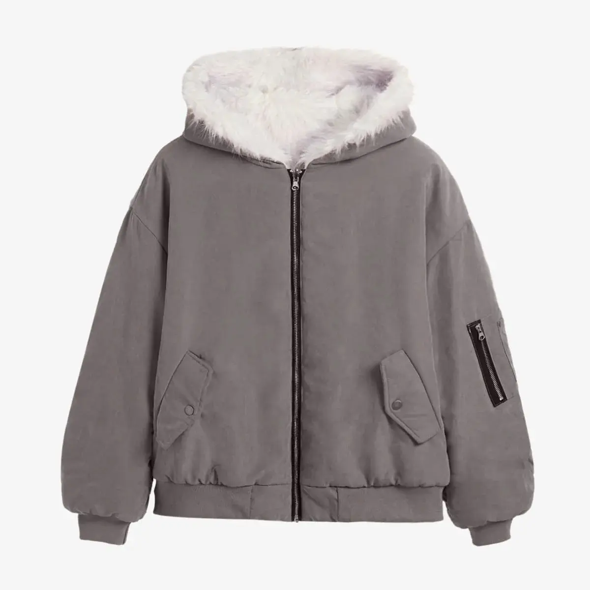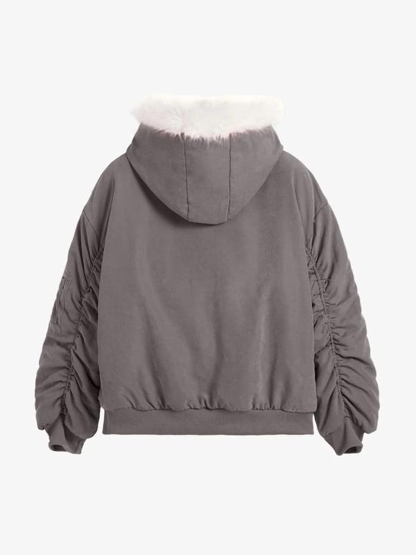 • Design Elements: Faux fur-lined hood, oversized silhouette, ribbed cuffs