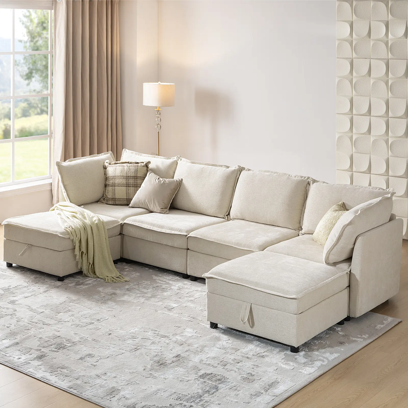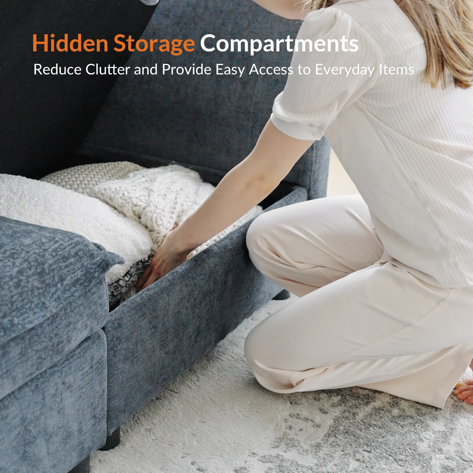 The soft cushions offer exceptional comfort. Hidden storage compartments under the seats help reduce clutter and provide easy access to everyday items. Its modular design allows you to rearrange the sections to create different living room layouts.