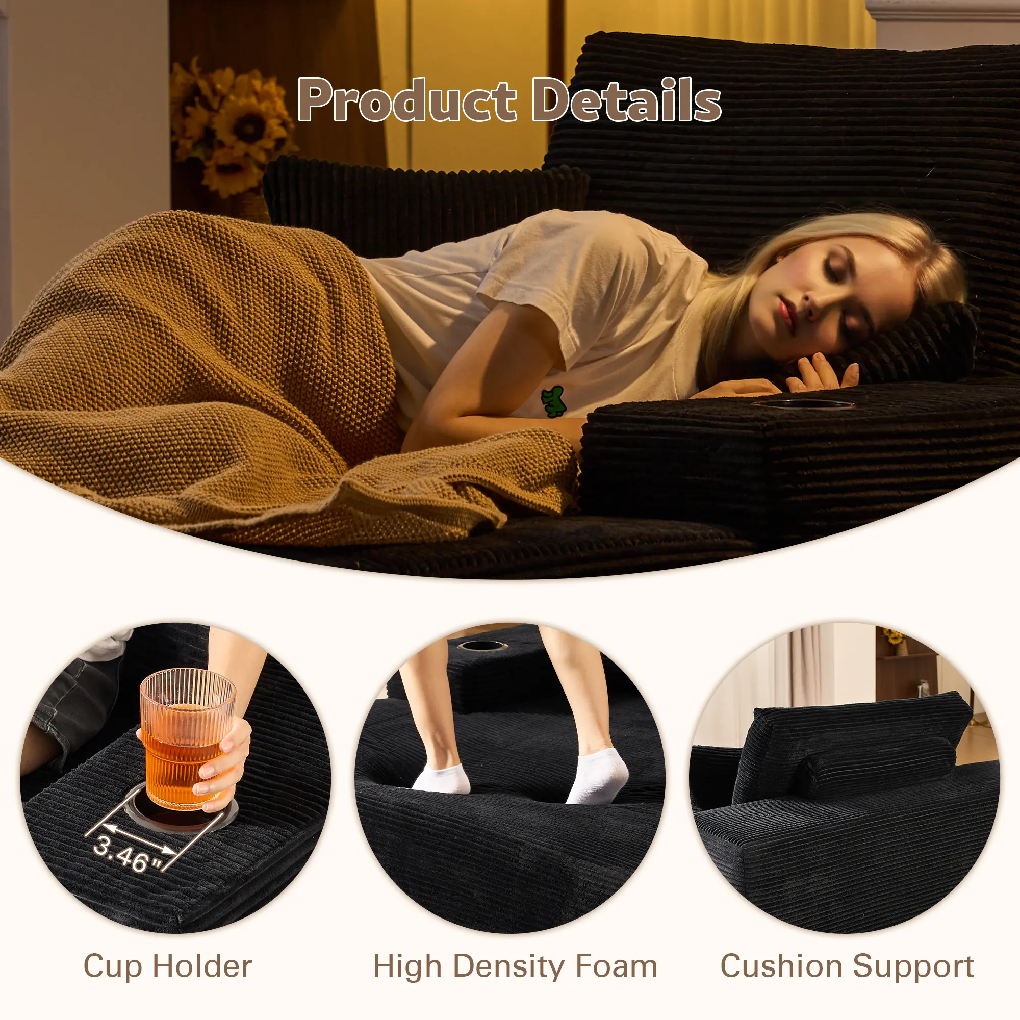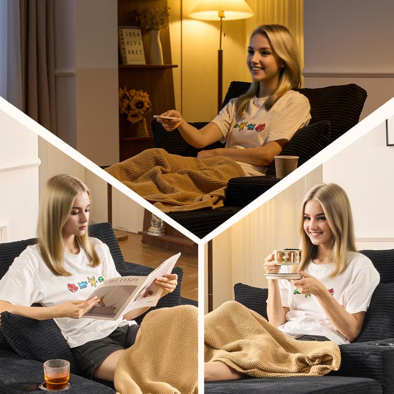The spacious design offers plenty of room to stretch out—perfect for napping, reading, or watching movies. The oversized lounge chair with a spacious sleeping area meets your and your family's needs. It includes headrest, lumbar, and backrest pillows for full-body comfort. 🛋️