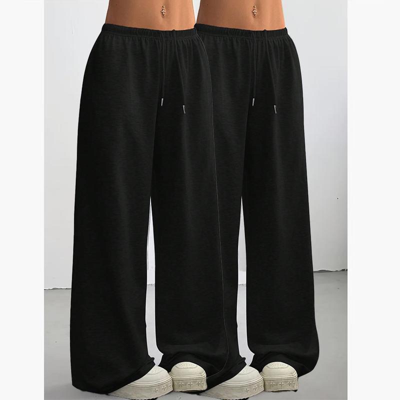 [Solid Color] 2pcs Oversized Sports Pants Loose Lounge Pants Black & Gray Pants Streetwear Pants Women Outfits Casual Pants Daily Wear Pants