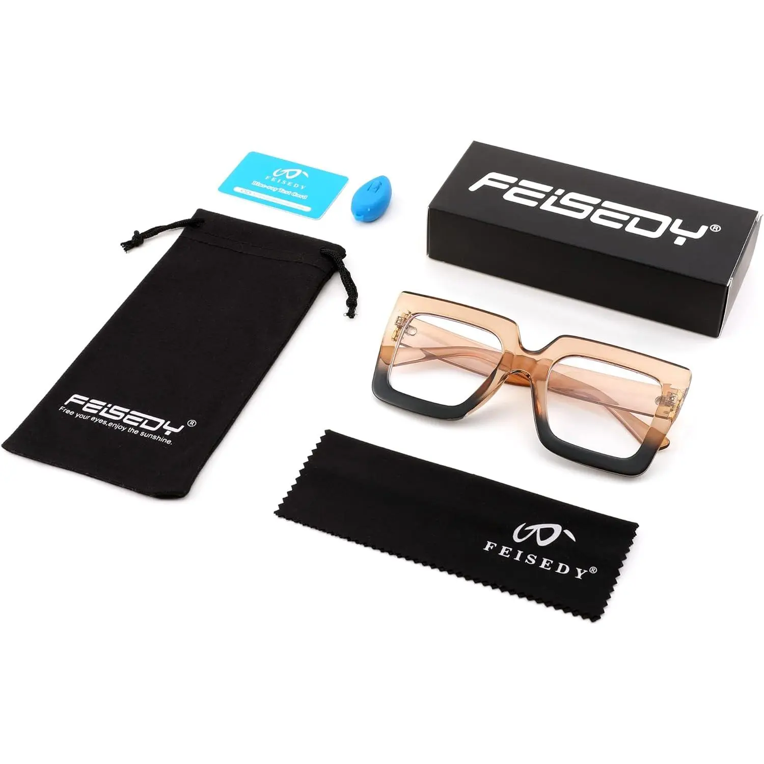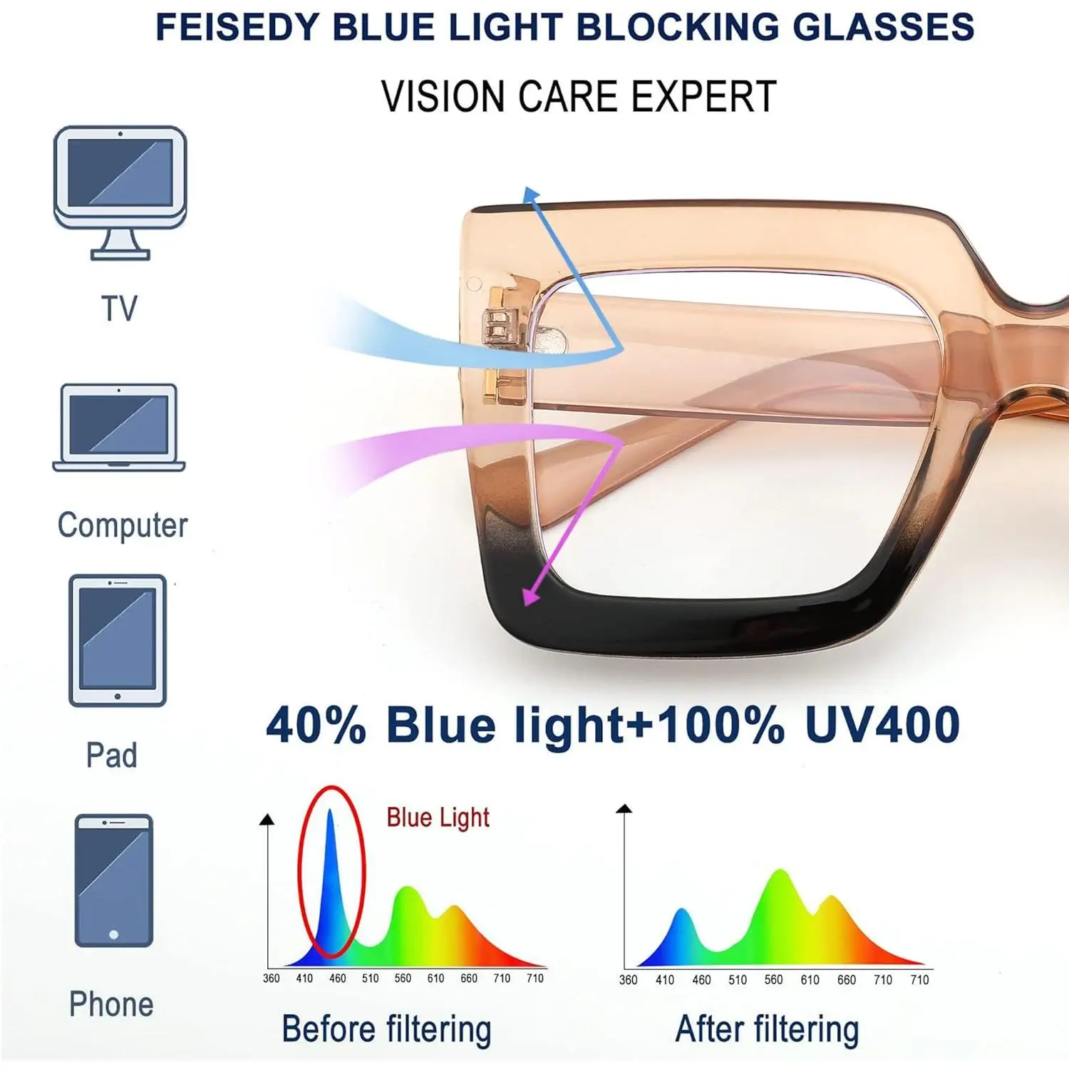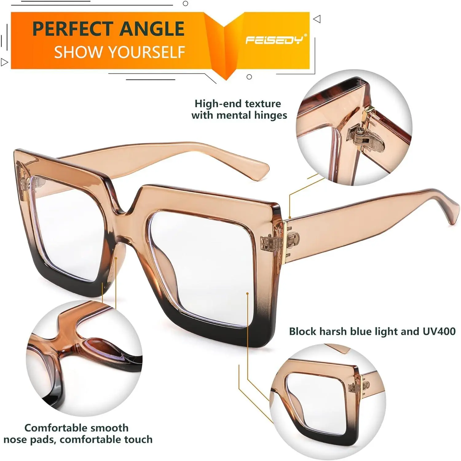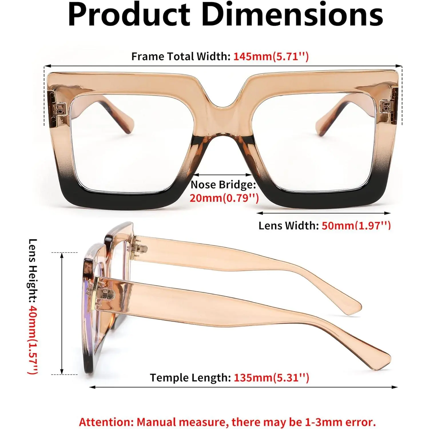 ·Fashion Blue Light Blocking Glasses: Oversized trendy square glasses comes with clear lens, suitable for people who are facing mobile phones and computers for a long time. Blue light blocking lenses can reduce the harmful blue light to the eyes.