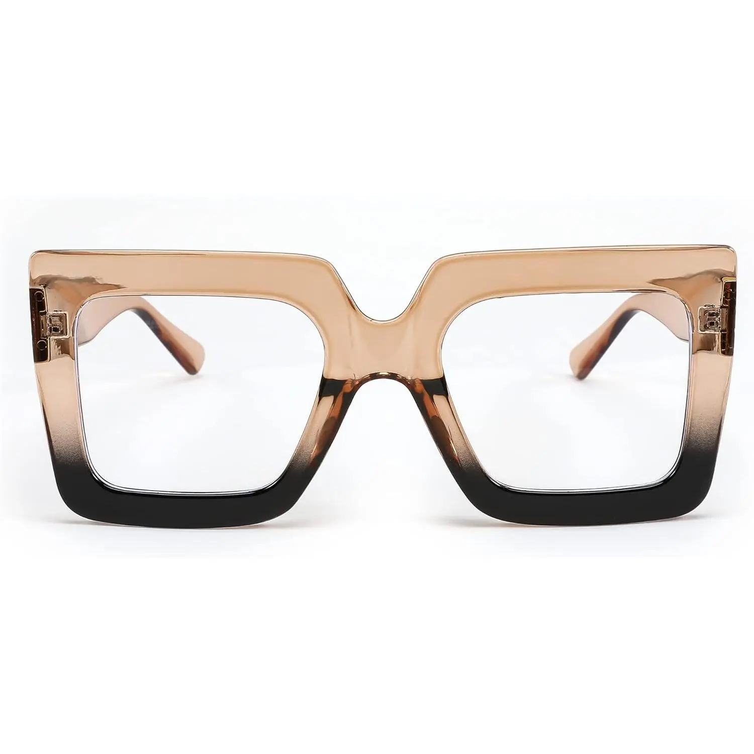 ·Unique design: Fashion Oversized Square Glasses Style Nice quality Frame Practical and Fashion Design, the shape of your face modified by the big square thick frame. Two color splicing eyeglass frame reflects novelty, make you more unique and noble.