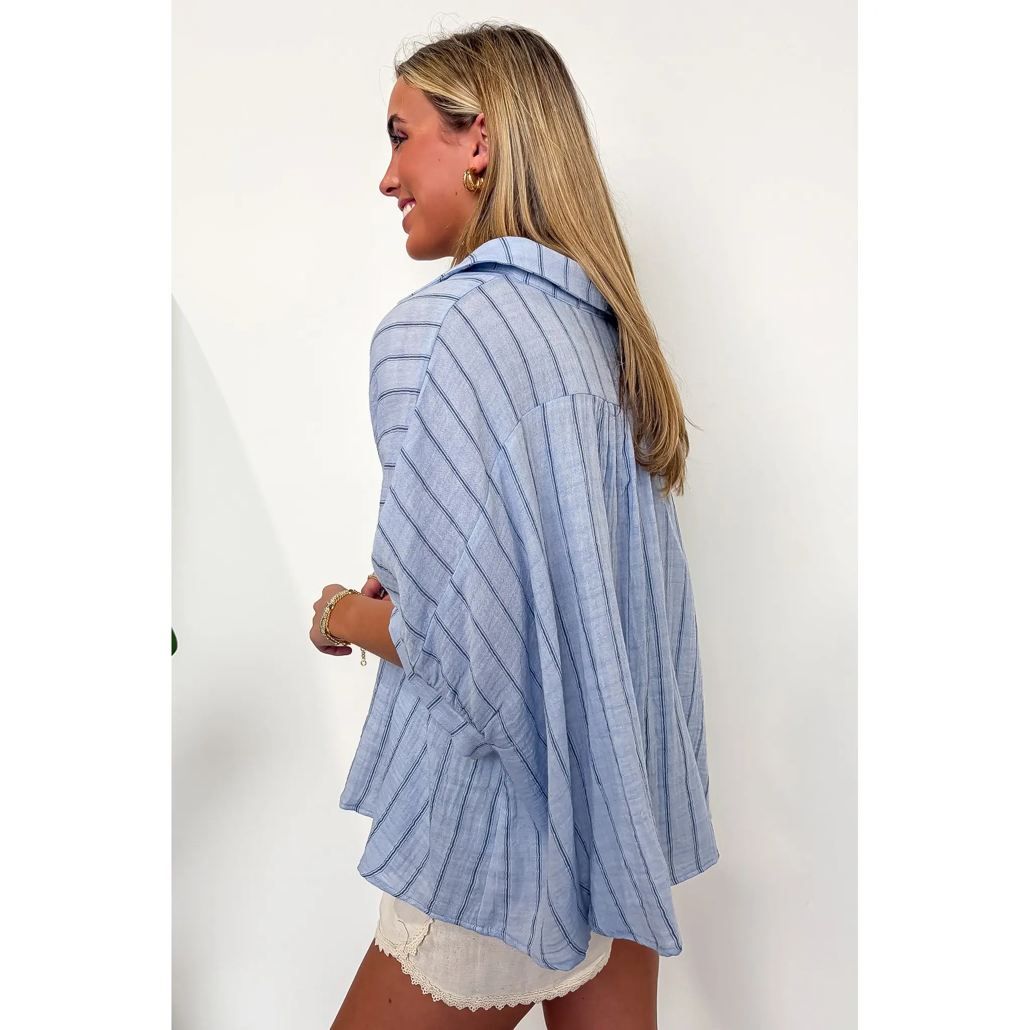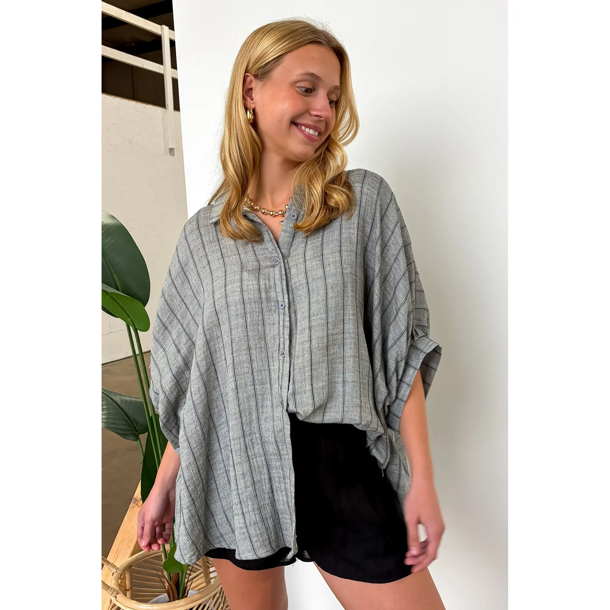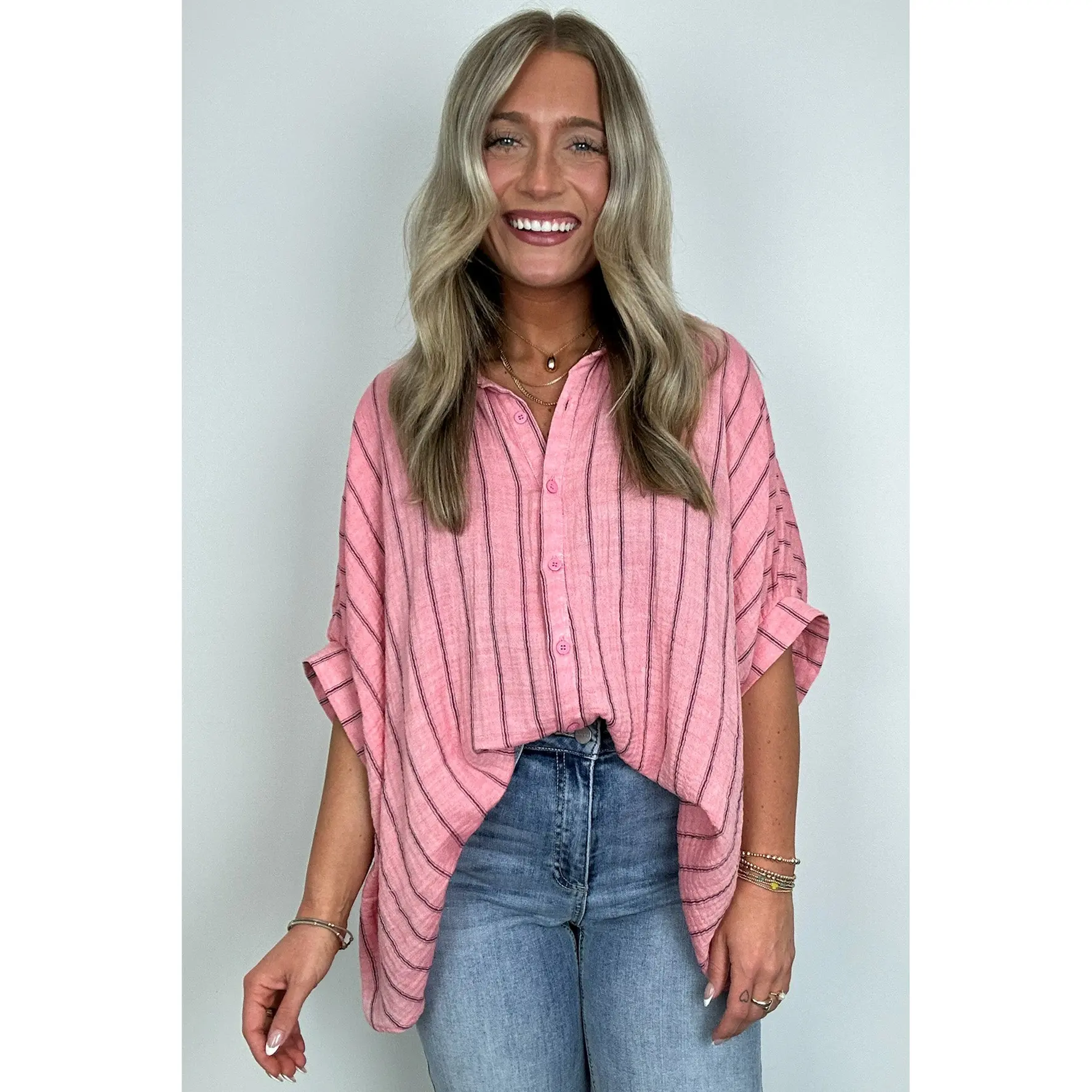 This is a great oversized dress up shirt. Love it with jeans or with palazzo pants to dress it up.