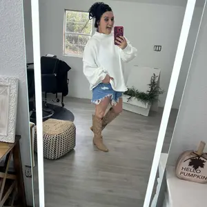 The perfect oversized sweater! Very soft, very thick and cozy. Looks great paired with a tiered skirt and boots. Highly recommend!